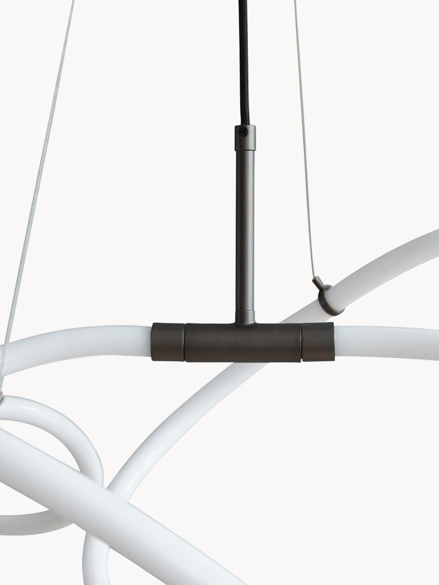 Kolekcja GHOST czerpie inspirację ze sztuki minimalistycznej, płynnie łącząc światło z konstrukcją w wyrazistej, graficznej formie. Sercem projektów są świetliste, akrylowe tuby o organicznych liniach, które roztaczają wokół siebie nastrojową, artystyczną poświatę. W zależności od punktu widzenia, lampy ukazują coraz to nowe wzory i kształty, nadając wnętrzu dynamiczną, rzeźbiarską obecność. Łącząc czyste linie z delikatnym oświetleniem, GHOST stanowi ciepłą i zachęcającą alternatywę dla surowych, technicznych opraw. Wyrafinowane metalowe akcenty podkreślają minimalizm projektu, a ręczne wykonanie sprawia, że światło w unikalny sposób przepływa przez zakrzywioną sylwetkę, czyniąc każdy egzemplarz niepowtarzalnym dziełem sztuki.