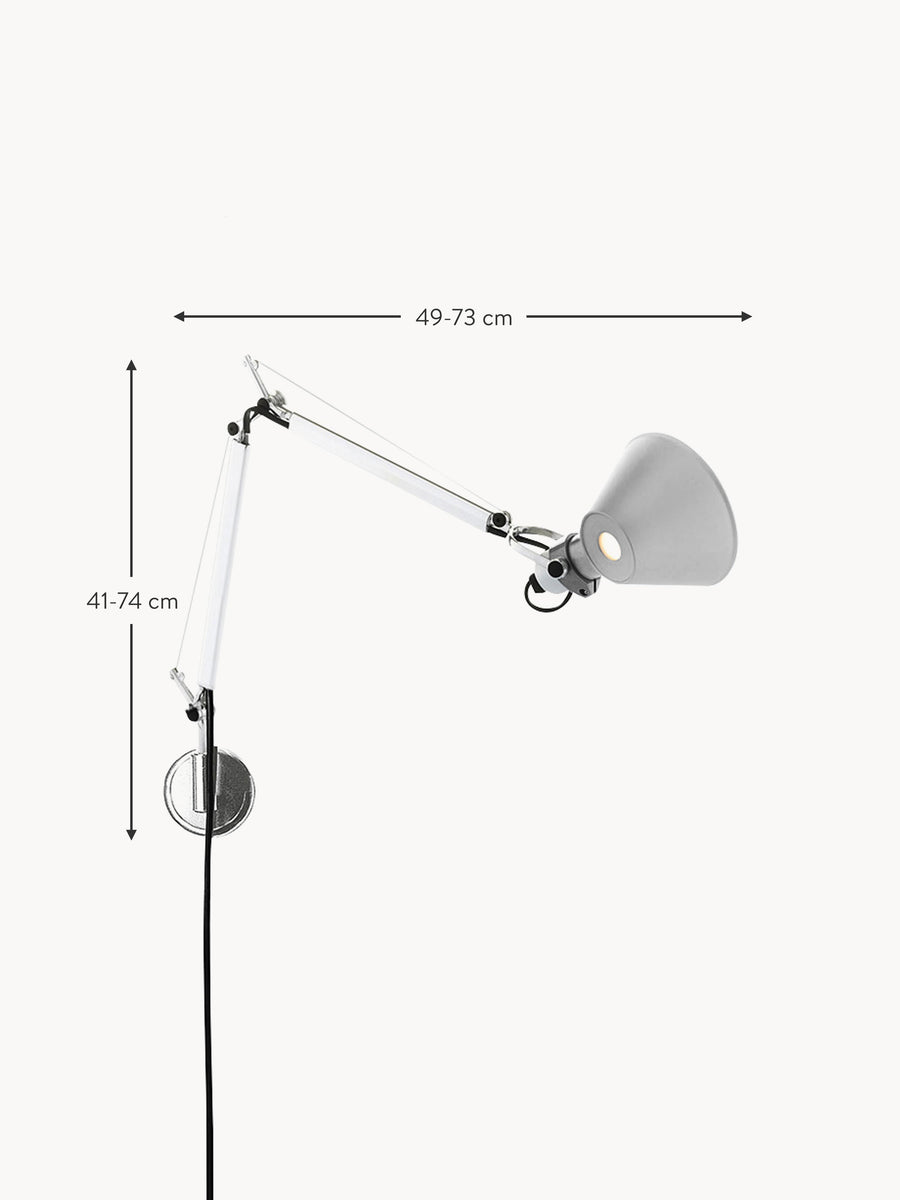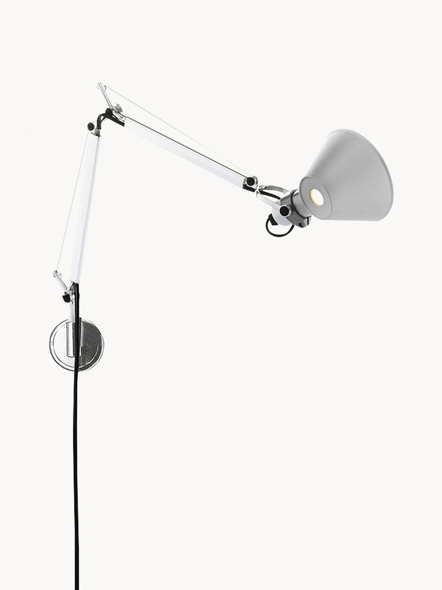 Tolomeo Micro ma niepowtarzalny design: regulowane ramię, matowy, aluminiowy klosz oraz polerowane złącza i wsporniki z systemem równoważenia sprężyn.
