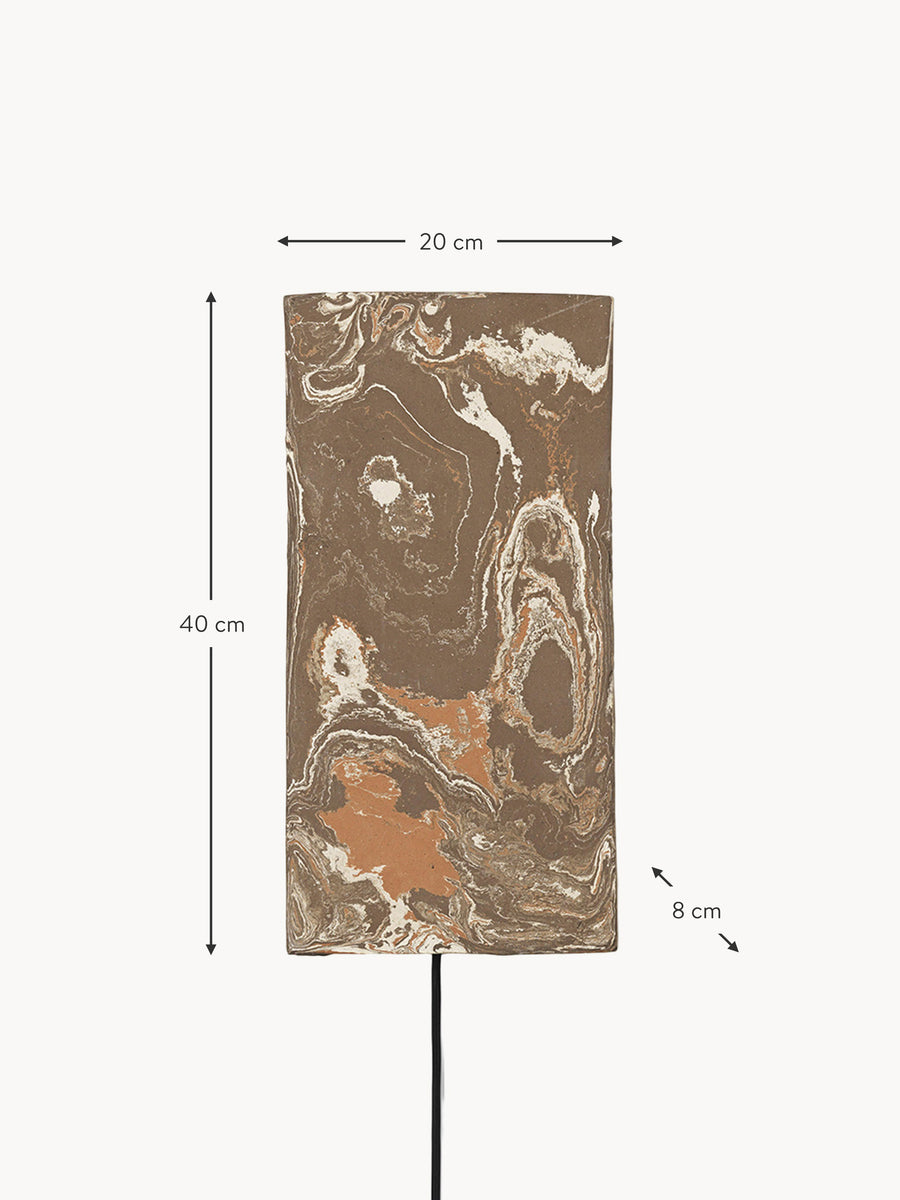 Lampa ścienna ARGILLA została wykonana we Włoszech z najlepszej gliny pochodzącej z terenów zalewowych rzeki P, dzięki czemu doskonale reprezentuje swoją nazwę, co po włosku oznacza glinę. Charakterystyczna lampa posiada kafel wykonany wyłącznie przy użyciu wody, ognia i ludzkich rąk, który rozświetli Twoją przestrzeń miękkim, rozproszonym światłem. Lampa posiada bogaty zasięg, co podkreśla tekstura płyty i naturalny, marmurkowy wzór.