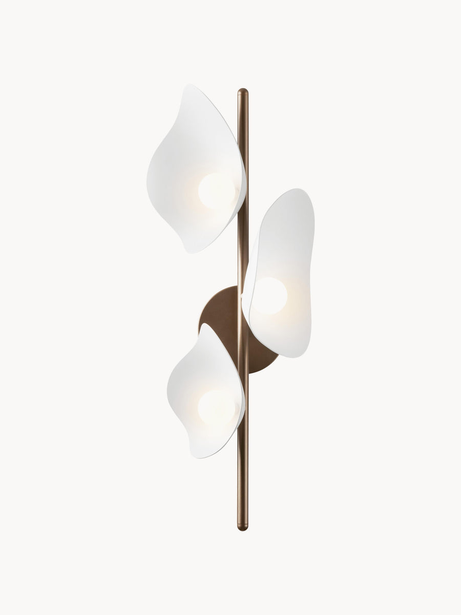 Zaprojektowana przez Jessicę Vedel lampa ścienna/sufitowa FLORII dodaje pomieszczeniu odrobiny wyrafinowania. Biały metalowy klosz jest przymocowany do ciemnobrązowego stelaża z brązu i tworzy fascynującą grę światła i cienia.
