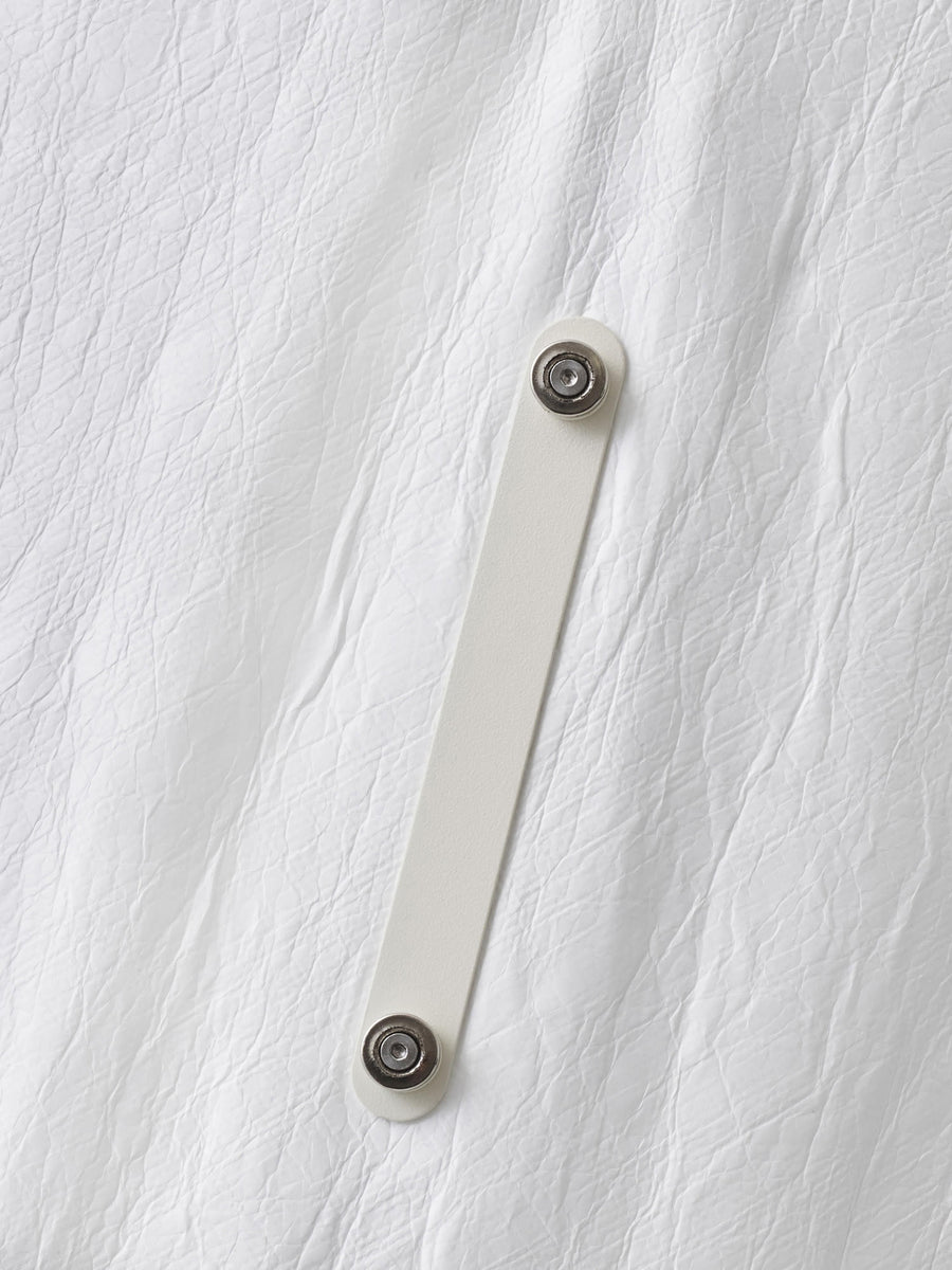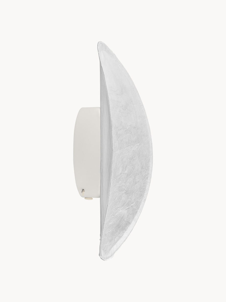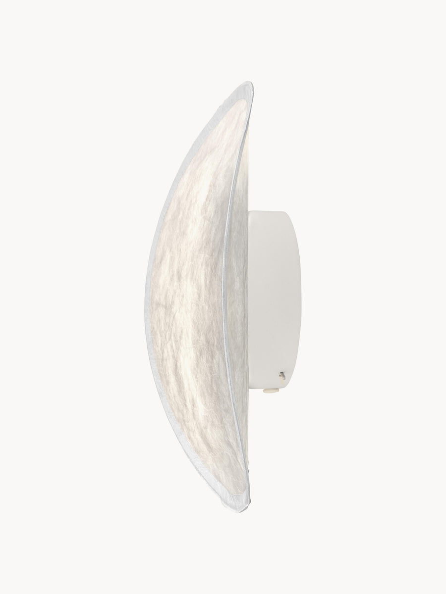 W swojej serii TENSE dla New Works, projektanci Panter & Tourron eksplorują napięcie materiałów, nadając im lekkie, płynne formy. Ścienna lampa TENSE, w subtelnym, chmurowym odcieniu, delikatnie rozprasza światło, tworząc rzeźbiarski efekt, który harmonijnie komponuje się z różnorodnymi wnętrzami. Bogato teksturowany dyfuzor z membrany Tyvek, przypominającej cienki papier, dodaje projektowi wyjątkowego charakteru. Jest przy tym trwały, ognioodporny (klasa 1) i w pełni nadający się do recyklingu. Po włączeniu lampy marszczona struktura ujawnia subtelną grę światła i cienia.