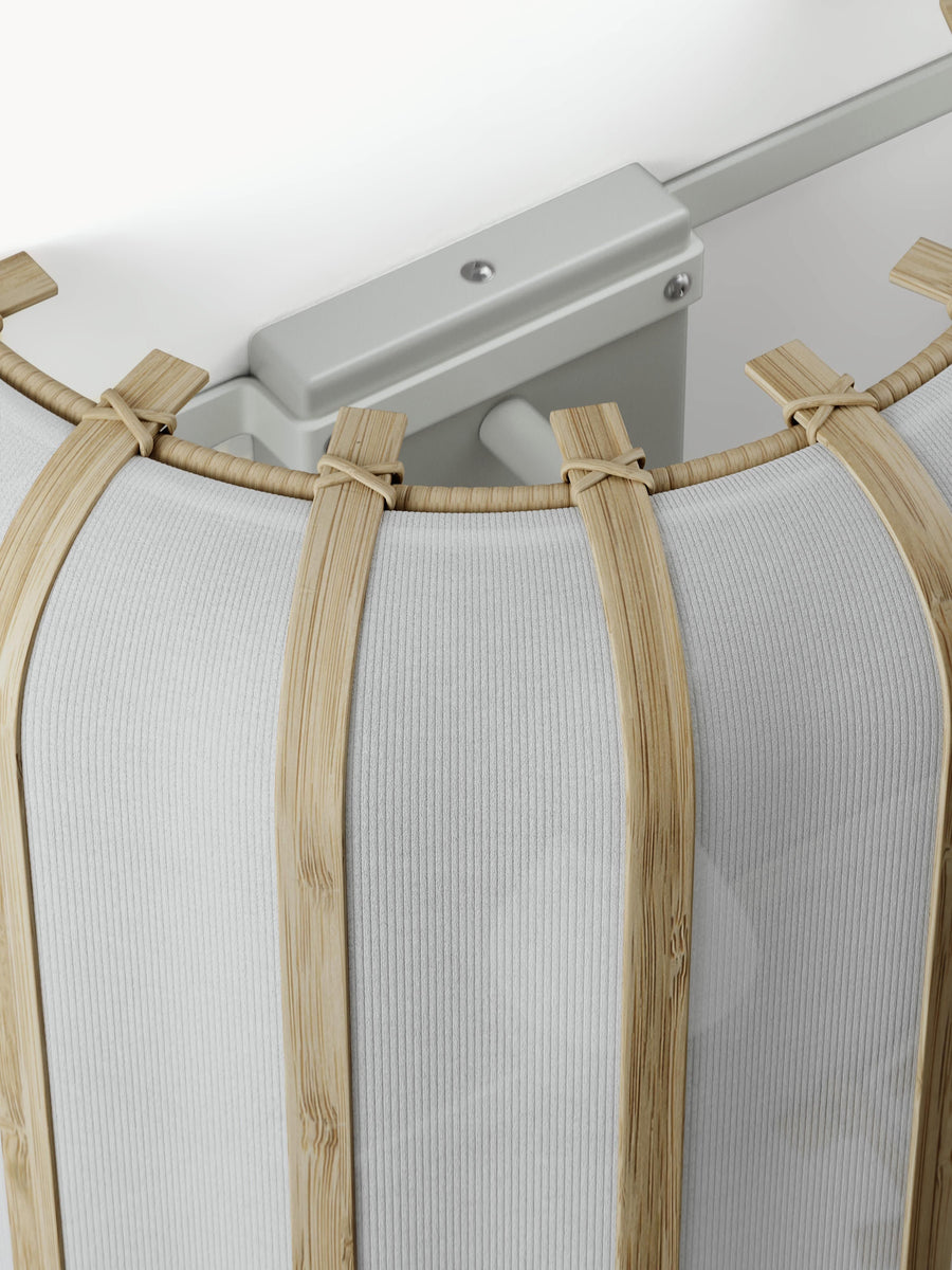 jasne drewno naturalne, biały; tkanina, drewno bambusowe, rattan