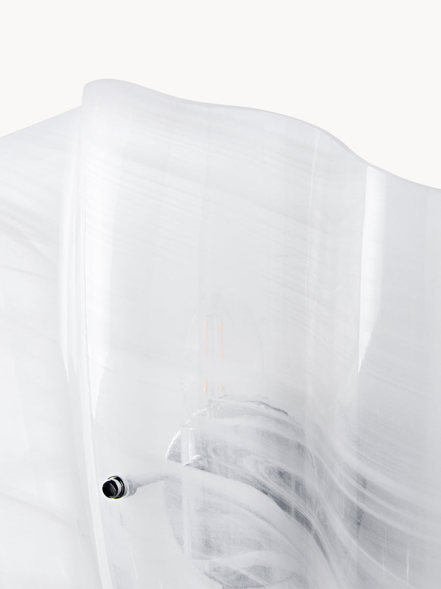 Seria lamp ELOISE zachwyca unikalnym, falistym designem. Szkło sprawia wrażenie delikatnie złożonego, tworząc płynny, rzeźbiarski kształt. Bąbelkowa struktura nadaje ELOISE dodatkową warstwę wyjątkowości. Wprowadź do swojego domu miękki, artystyczny akcent dzięki tej wyjątkowej lampie.