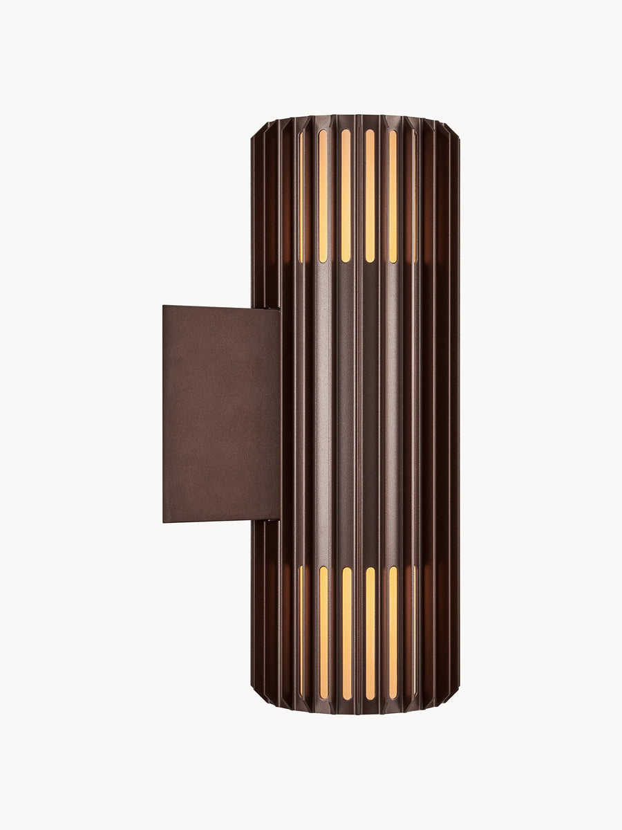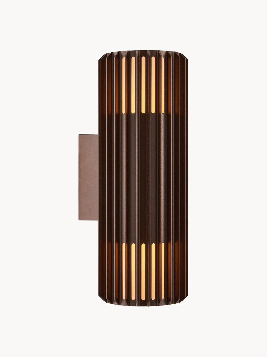 Rzeźbiarski design i nowoczesny minimalizm – to kluczowe cechy serii ALUDRA autorstwa Jacob Jensen Design. Uniwersalne kinkiety świecą zarówno w górę, jak i w dół, tworząc przyjemny efekt światła i cienia oraz zapraszającą atmosferę w przestrzeni zewnętrznej.