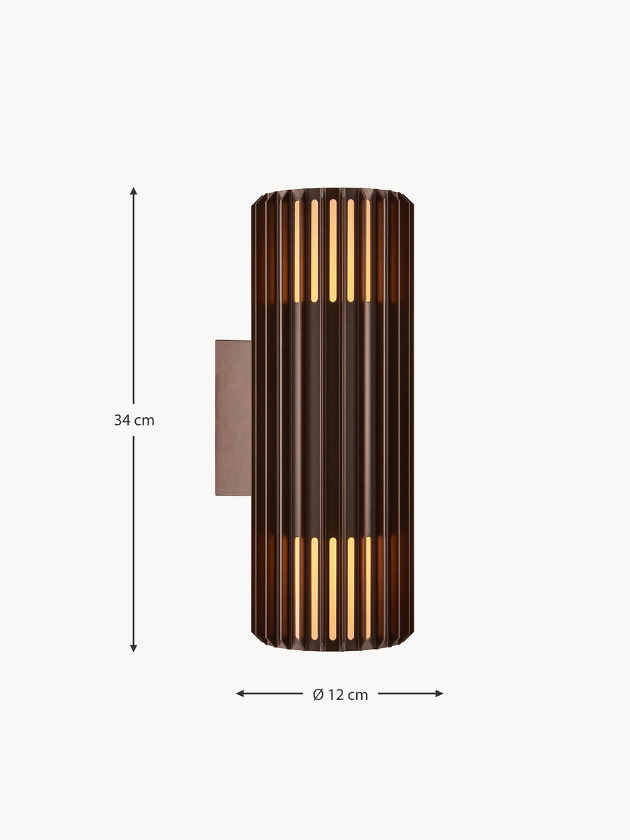 Rzeźbiarski design i nowoczesny minimalizm – to kluczowe terminy opisujące serię Aludra autorstwa Jacob Jensen Design. To wszechstronna lampa ścienna, która emituje światło zarówno w górę, jak i w dół, tworząc przyjemny efekt świetlny i zapraszającą atmosferę w Twojej przestrzeni zewnętrznej.
