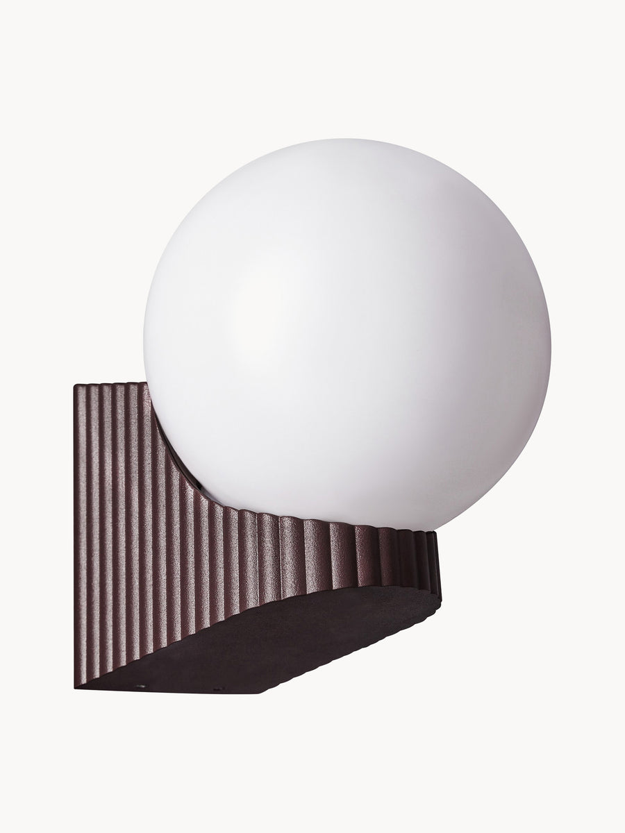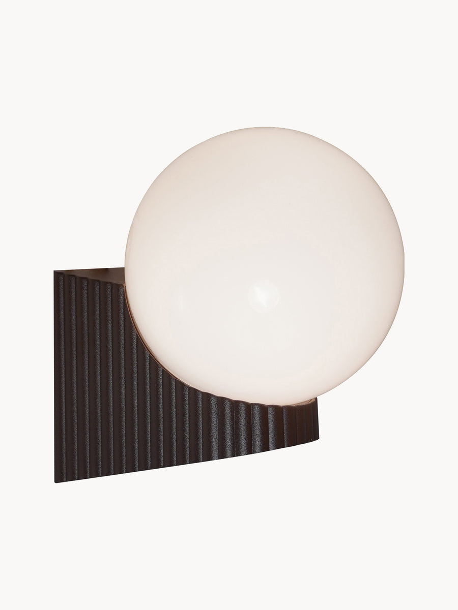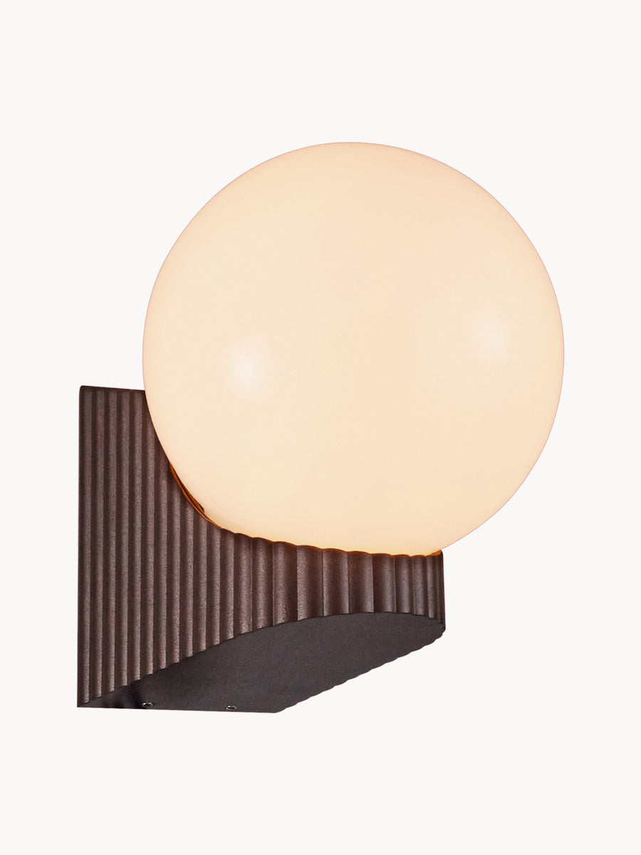 Kinkiet Hayley duńskiego duetu Says Who łączy w sobie wyraźne odniesienia do Art Deco z nowoczesnym akcentem. Podstawa wykonana z brązowego metalu ma elegancko ryflowaną powierzchnię. Błyszcząca szklana kopuła zapewnia przyjemne, delikatne światło.
