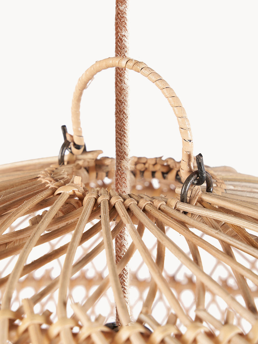 Wprowadź lekkość i rytm do swojej przestrzeni dzięki BUBBLE, pięknie wykonanej małej wiszącej lampie z naturalnego rattanu. Jej miękkie, zaokrąglone kształty delikatnie unoszą się, rzucając ciepłe, plamiste światło, które zamienia każdy kąt w spokojną, zachęcającą oazę. Możesz zawiesić ją nad stołem w jadalni, niech rozjaśni korytarz lub umieść ją tam, gdzie chcesz, aby dodać relaksującego akcentu, który będzie pasował do boho, nadmorskiego lub nowoczesnego wnętrza.