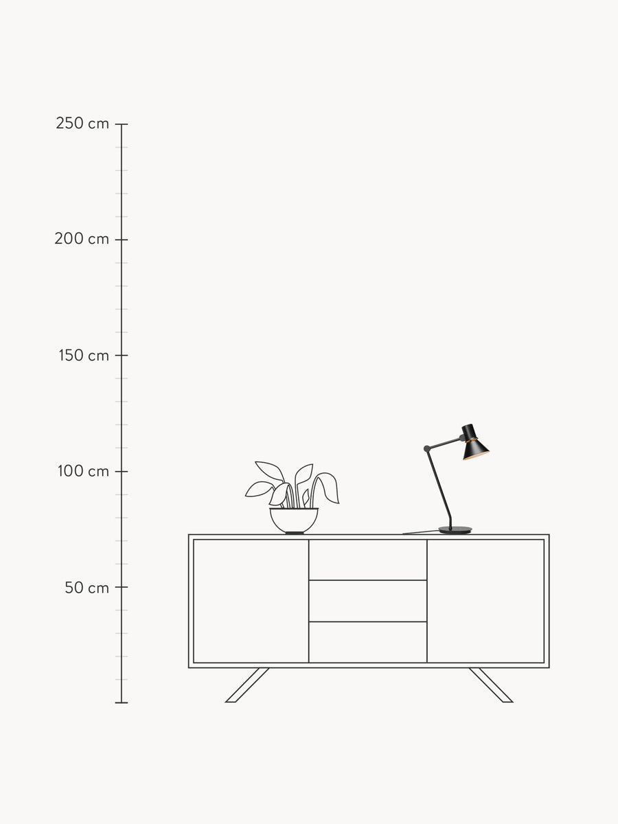 Lampa biurkowa TYPE 80 wyróżnia się wyrazistą, graficzną sylwetką oraz charakterystycznym efektem świetlnym, który subtelnie rozświetla przestrzeń wokół klosza. Każdy jej detal został starannie przemyślany i precyzyjnie zaprojektowany, by zapewnić elegancki wygląd, intuicyjną obsługę i spójność z całą kolekcją.