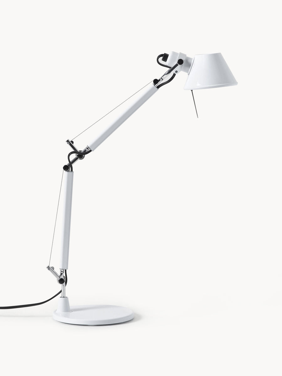 Tolomeo Micro ma niepowtarzalny design: regulowane ramię, matowy, aluminiowy klosz oraz polerowane złącza i wsporniki z systemem równoważenia sprężyn.