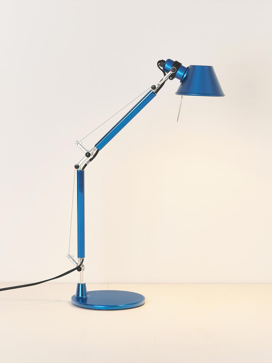 Tolomeo Micro ma niepowtarzalny design: regulowane ramię, matowy, aluminiowy klosz oraz polerowane złącza i wsporniki z systemem równoważenia sprężyn.