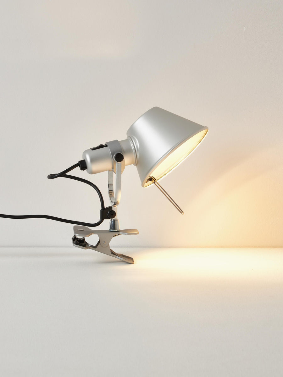 Lampa biurkowa z serii Tolomeo charakteryzuje się niezwykłą elastycznością. Klips można przymocować do wszystkich krawędzi o maksymalnej wysokości 30 mm. Klosz wykonanu z matowego aluminium można regulować we wszystkich kierunkach.
