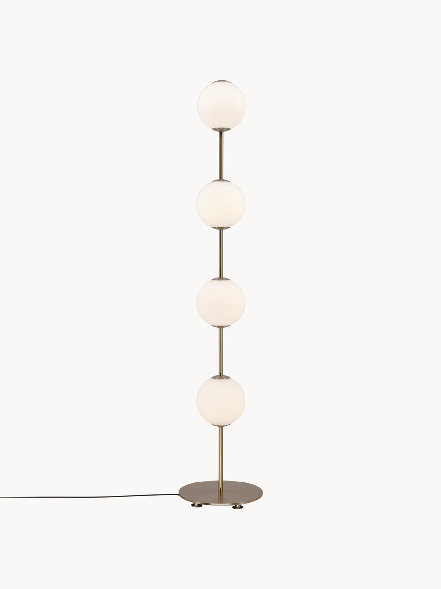Wprowadź elegancję do swojego domu dzięki lampie podłogowej AUDREY. Lampa AUDREY została starannie zaprojektowana, aby nadać Twojemu domowi wyrafinowany akcent i wzbogaci Twoją przestrzeń wyjątkowymi detalami. AUDREY emanuje urzekającym ciepłem i elegancją przypominającą błyszczące perły. Delikatne kulki roztaczają rozproszone światło i tworzą uspokajającą atmosferę.