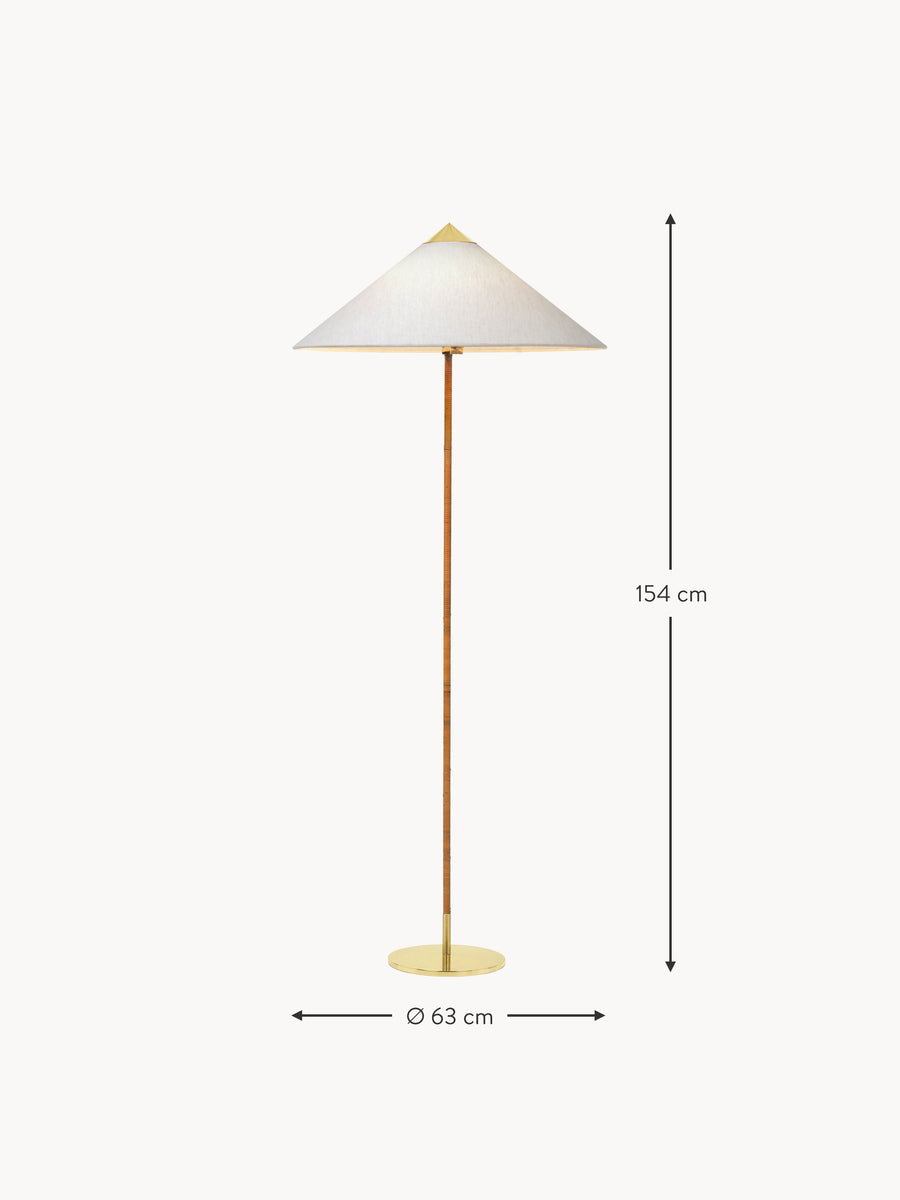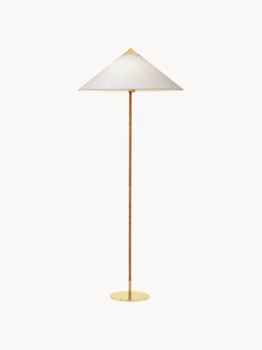 Lampa podłogowa 9602, znana również jako „Chiński kapelusz”, została zaprojektowana przez Paavo Tynella w 1938 roku dla hotelu Aulanko. Charakteryzuje się eleganckim i zwiewnym kloszem oraz rattanowym stelażem, a lampa 9602 ukazuje nieograniczoną wyobraźnię projektanta i niezrównaną zdolność do tworzenia projektów o trwałej urodzie. Dodając zabawny, wesoły akcent u góry, zrównoważony przez bardziej statyczną formę podstawy, lampa podłogowa 9602 idealnie nadaje się do tworzenia delikatnego światła w domowym salonie.