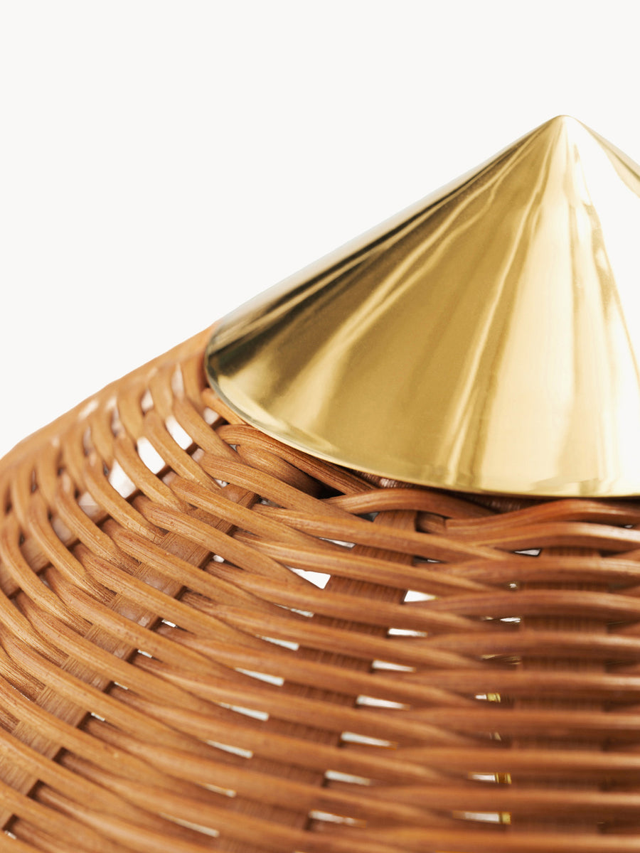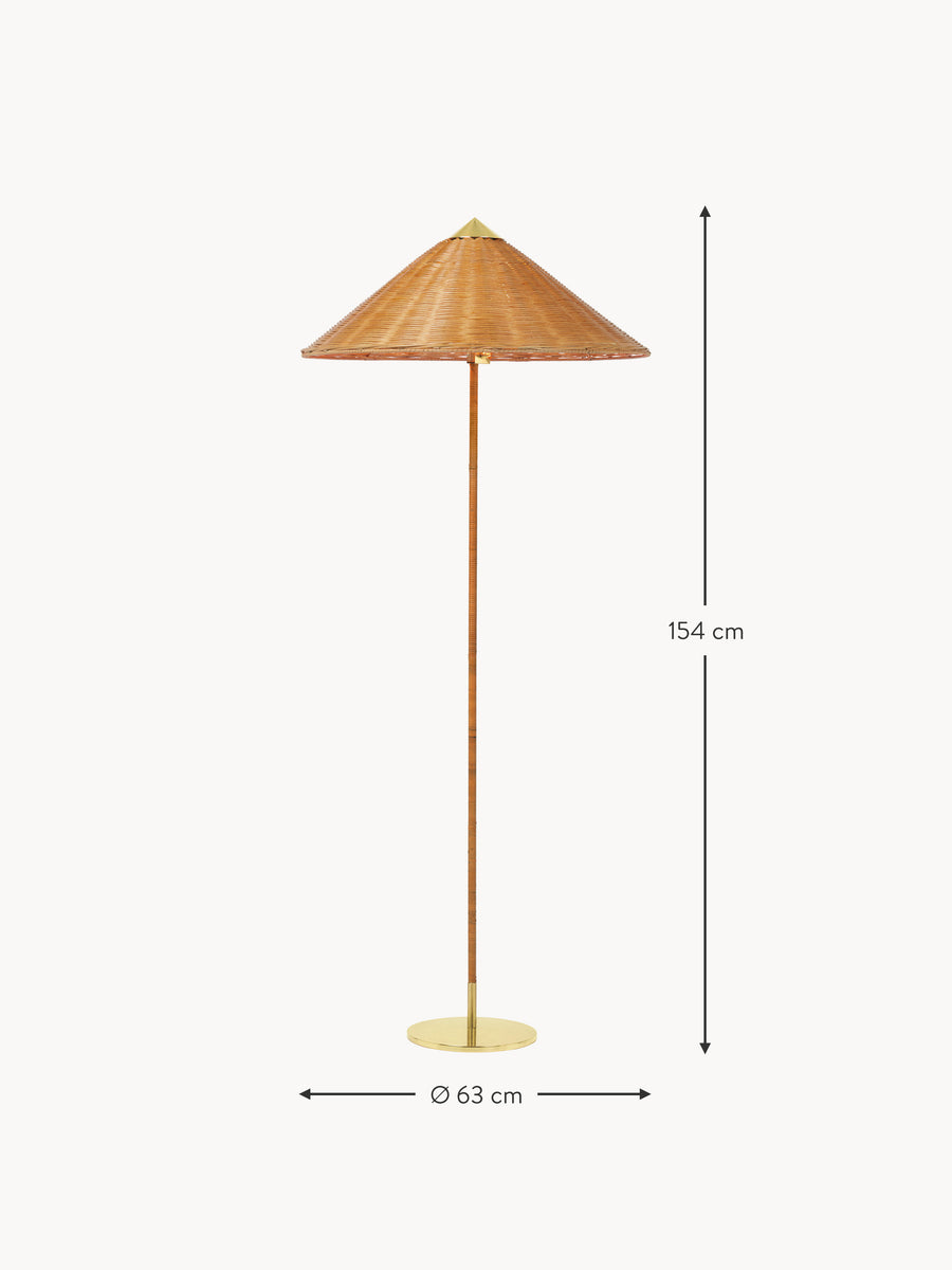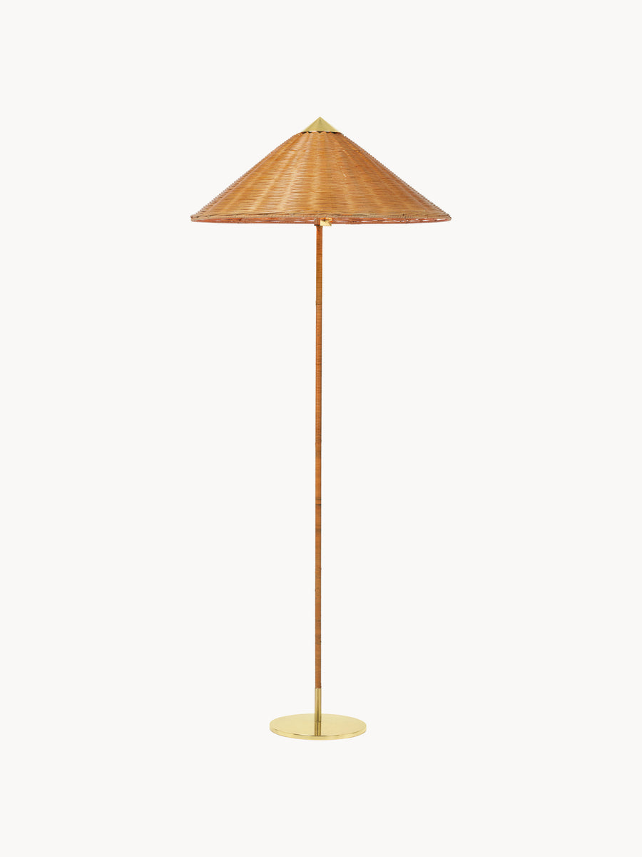 Lampa podłogowa 9602, znana również jako „Chiński kapelusz”, została zaprojektowana przez Paavo Tynella w 1938 roku dla hotelu Aulanko. Charakteryzuje się eleganckim i zwiewnym kloszem oraz rattanowym stelażem, a lampa 9602 ukazuje nieograniczoną wyobraźnię projektanta i niezrównaną zdolność do tworzenia projektów o trwałej urodzie. Dodając zabawny, wesoły akcent u góry, zrównoważony przez bardziej statyczną formę podstawy, lampa podłogowa 9602 idealnie nadaje się do tworzenia delikatnego światła w domowym salonie.