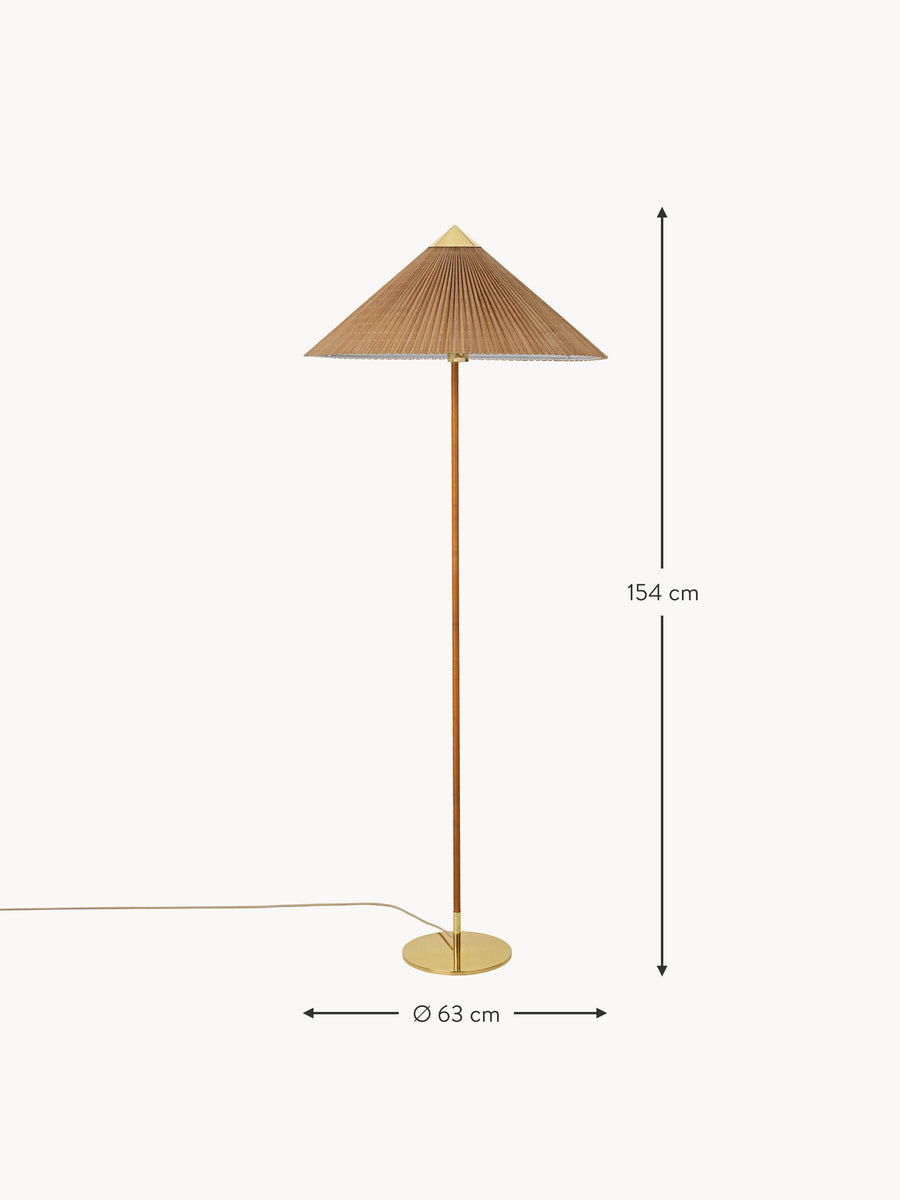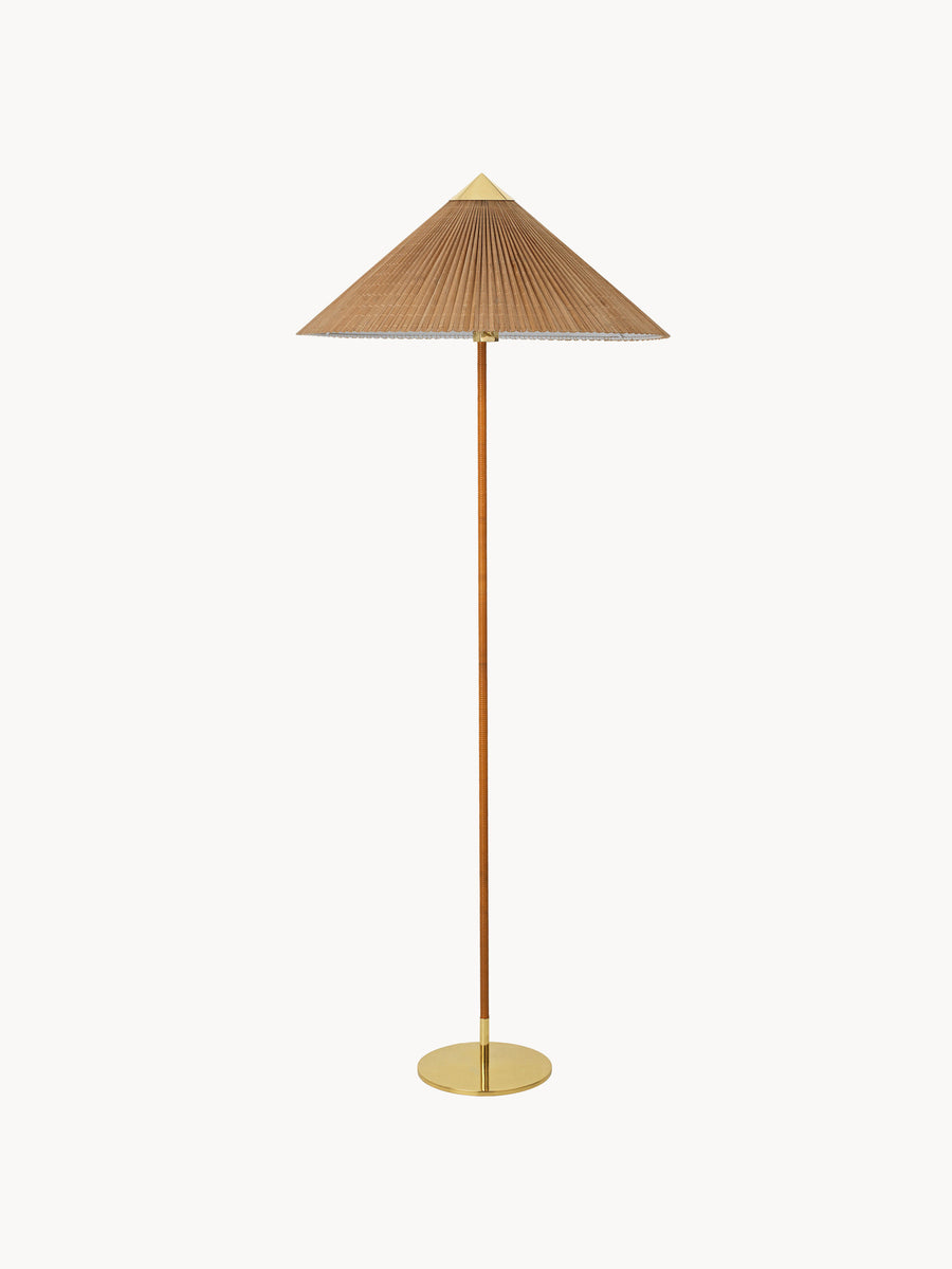 Lampa podłogowa 9602, znana również jako „Chiński kapelusz”, została zaprojektowana przez Paavo Tynella w 1938 roku dla hotelu Aulanko. Charakteryzuje się eleganckim i zwiewnym kloszem oraz rattanowym stelażem, a lampa 9602 ukazuje nieograniczoną wyobraźnię projektanta i niezrównaną zdolność do tworzenia projektów o trwałej urodzie. Dodając zabawny, wesoły akcent u góry, zrównoważony przez bardziej statyczną formę podstawy, lampa podłogowa 9602 idealnie nadaje się do tworzenia delikatnego światła w domowym salonie.