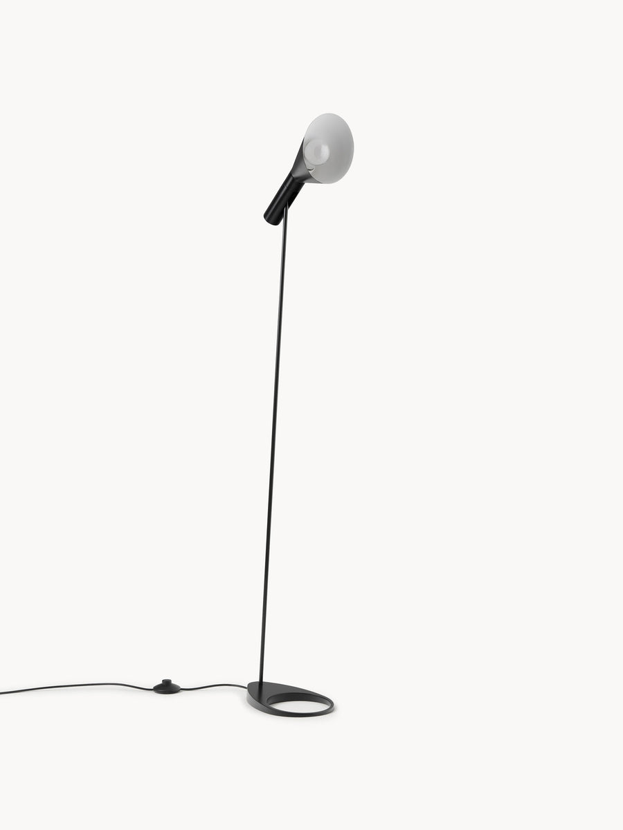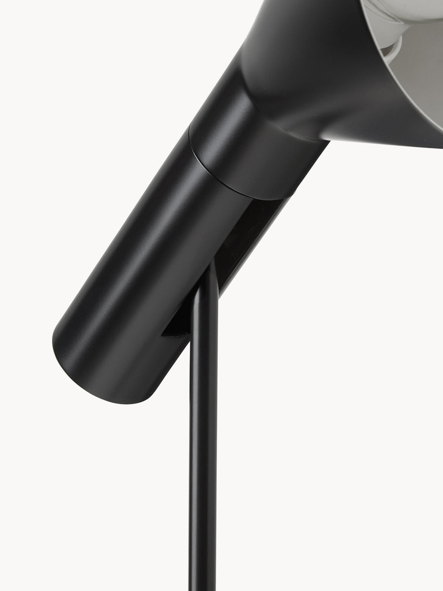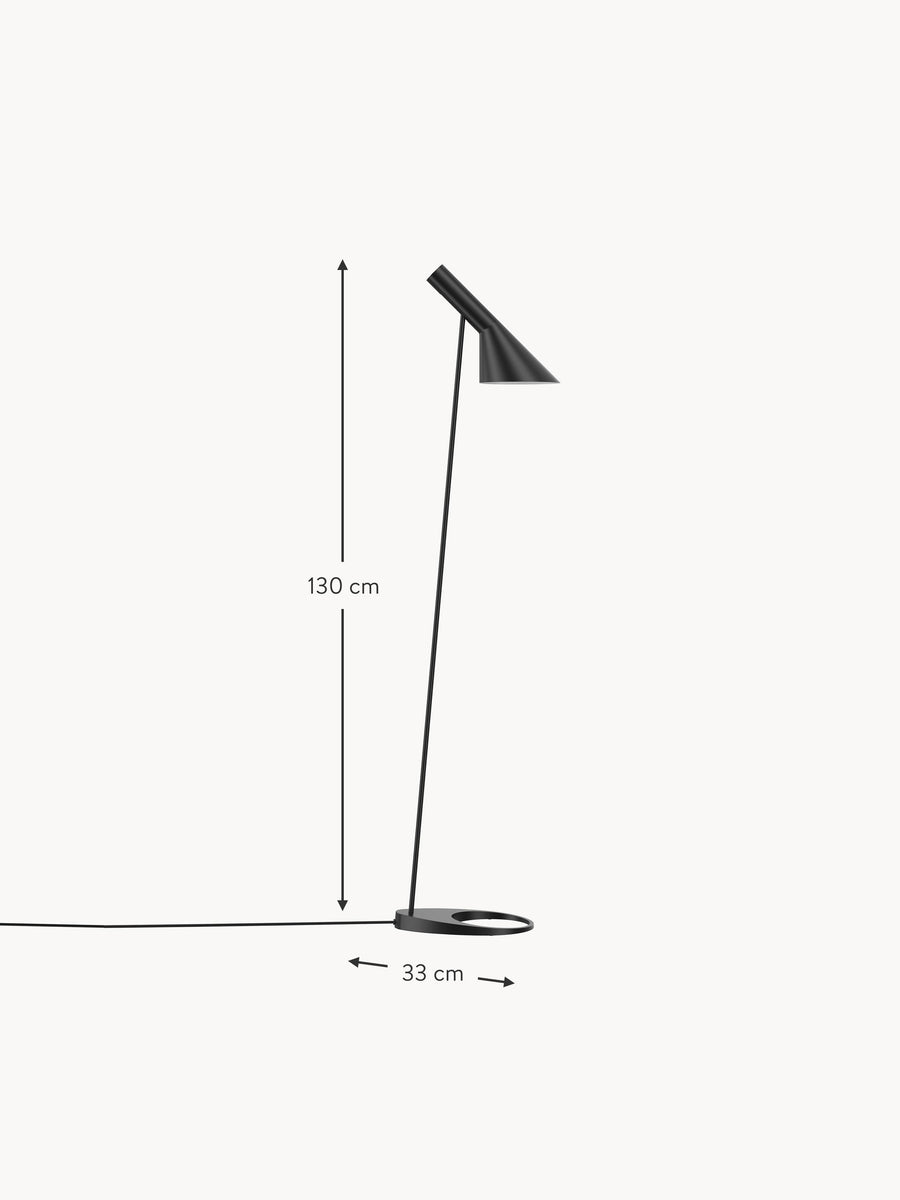 Lampa AJ została zaprojektowana w 1957 roku dla hotelu SAS Royal w Kopenhadze i jest legendarnym projektem Arne Jacobsena. Charakteryzuje się graficznym i stylistycznie czystym wyrazem, nadając lampie ponadczasowy wygląd, który można łączyć z różnymi odcieniami kolorystycznymi, zgodnie z nowoczesnymi trendami w aranżacji wnętrz. Lampa podłogowa AJ emituje światło skierowane w dół. Nachylenie klosza można dostosować do własnych potrzeb. Wnętrze klosza jest w kolorze białym, co zapewnia równomierne, miękkie światło.