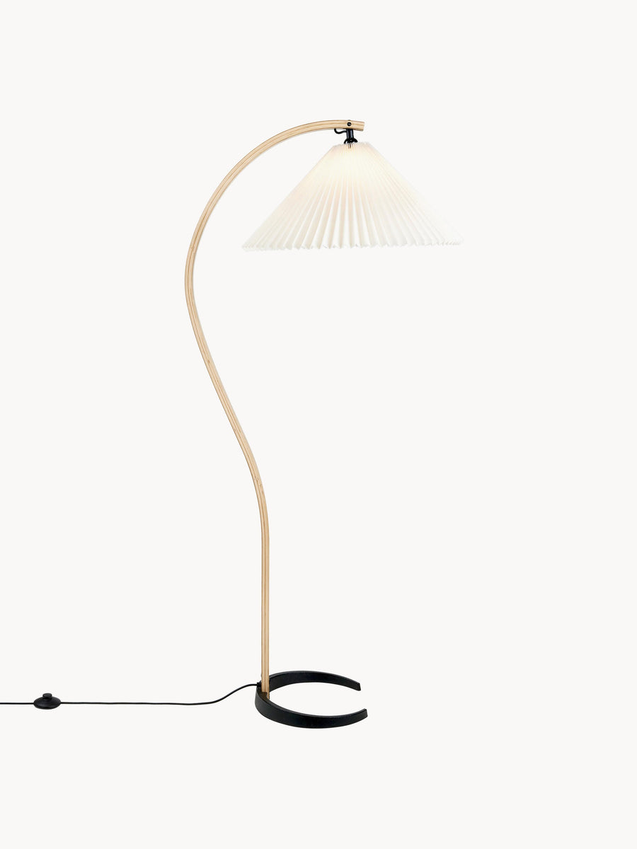 Dzięki zabawnemu wyrazowi, zakrzywionemu organicznemu kształtowi i kontrastowi z naturalnymi materiałami, lampa podłogowa Timberline jest uderzającym rzeźbiarskim elementem w każdym pomieszczeniu. Zaprojektowana przez Madsa Capraniego w latach 70. XX wieku, wizualnie wyróżniała się wśród swoich współczesnych i szybko stała się międzynarodową sensacją.