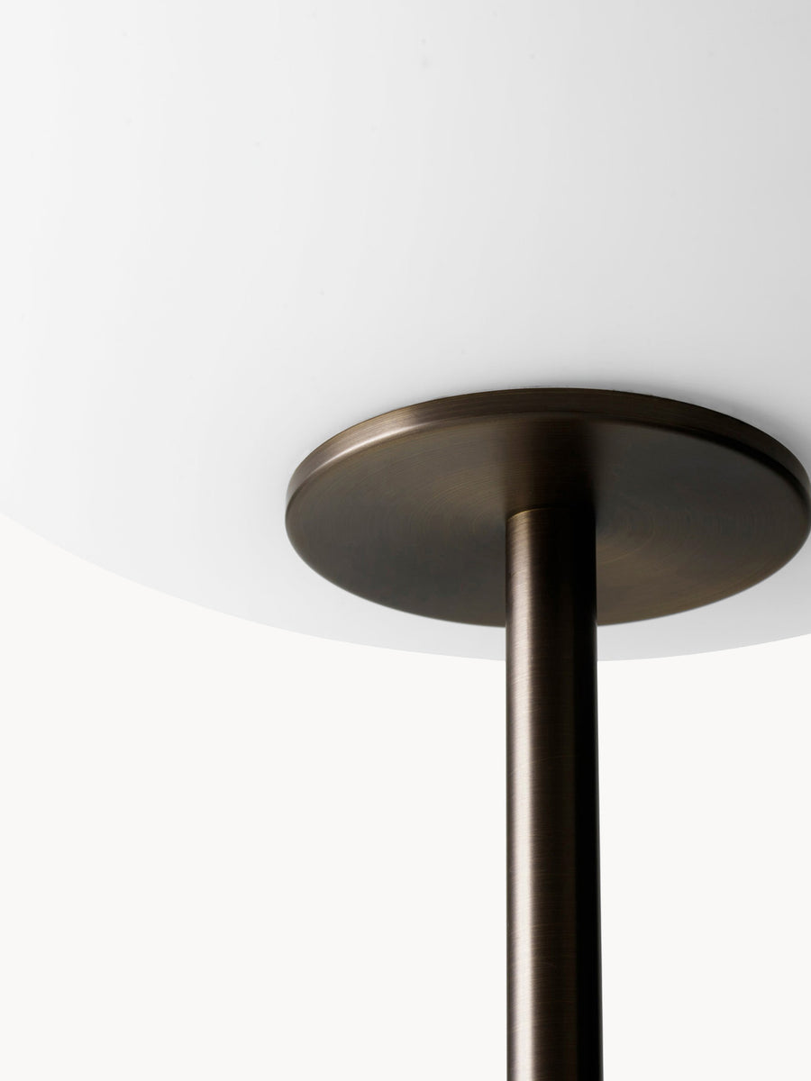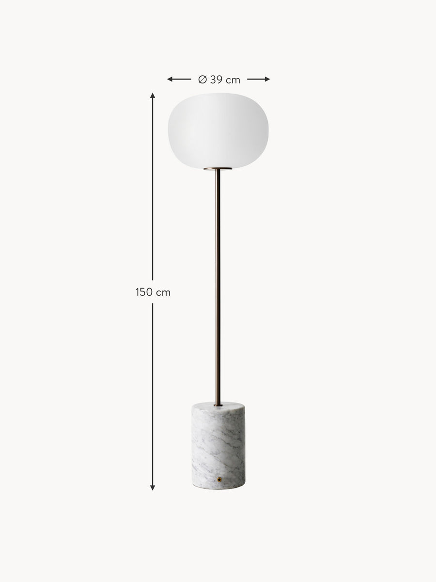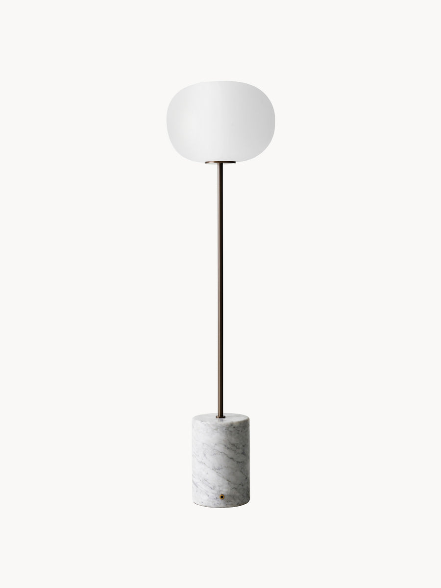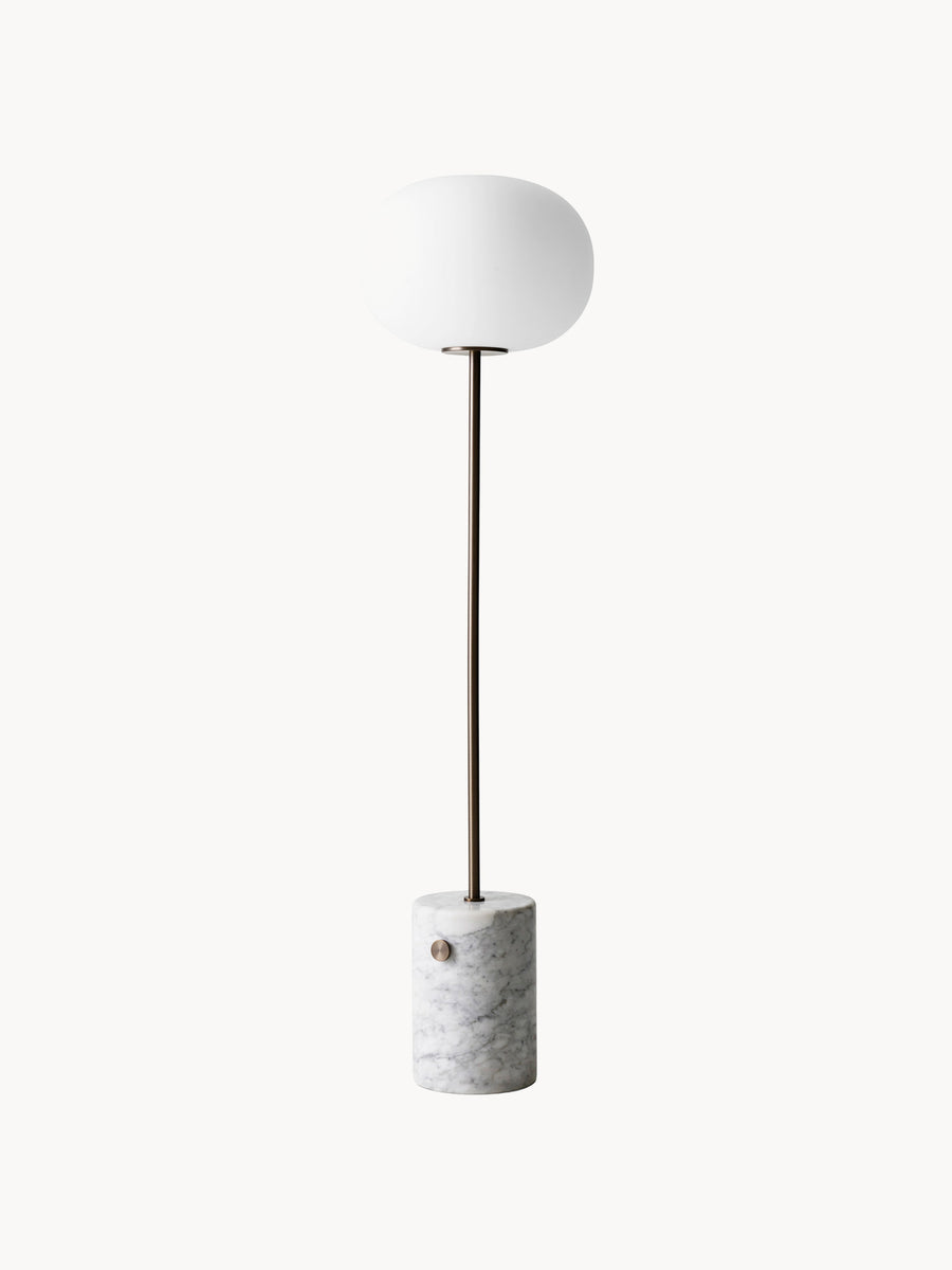 Lampa podłogowa JWDA, stanowiąca rozwinięcie klasycznej lampy stołowej, emituje stonowane światło o wyrazistym charakterze. To wyrafinowany, samodzielny projekt, który łączy kontrastujące elementy, tworząc elegancki efekt. Eliptyczny klosz z opalowego szkła został osadzony na smukłym trzonku, podczas gdy podstawa zachowuje swój charakterystyczny, zaokrąglony kształt. Wbudowany ściemniacz pozwala precyzyjnie kontrolować jasność żarówki – idealną do czytania, relaksu lub po prostu budowania nastroju we wnętrzu.