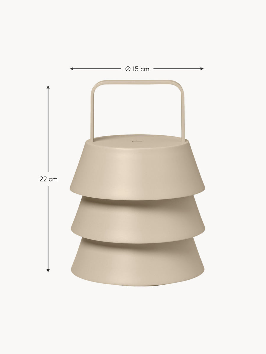 Lampa przenośna LUVER, wykonana z malowanej proszkowo stali, łączy w sobie elegancję i mobilność. Stonowana konstrukcja trzech stożkowych kloszy podkreśla precyzyjne wykonanie lampy, a kąt nachylenia kloszy rozprasza światło, tworząc przytulną atmosferę. Dzięki dotykowej funkcji przyciemniania i trzem ustawieniom jasności idealnie nadaje się do użytku wewnątrz i na zewnątrz w suche dni. Ta wszechstronna lampa dodaje ciepła i wyrafinowania każdemu pomieszczeniu.