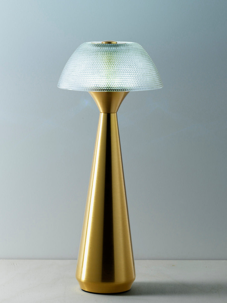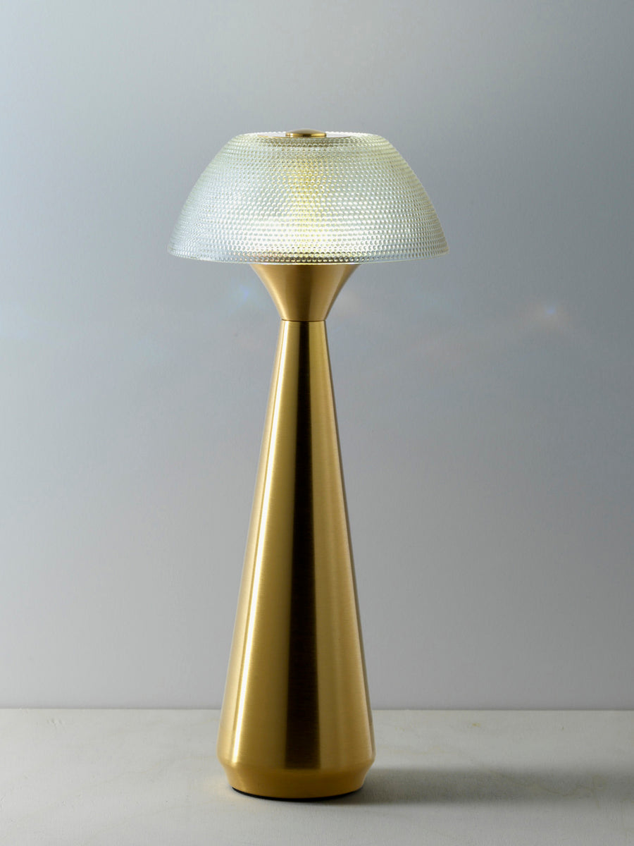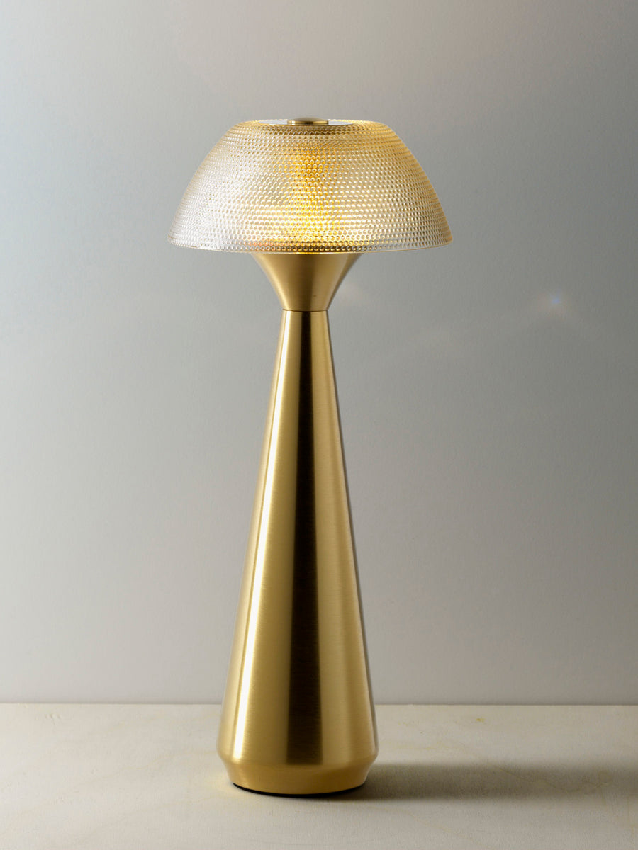 Delikatne światło spotyka się z rzeźbiarską formą w lampie stołowej MUSHLAMPIO, która mieni się spokojną pewnością siebie. Zaokrąglony kształt i ciepły metaliczny odcień nadają charakter każdemu pomieszczeniu, od sypialni po salon. Światło dostosowuje się do nastroju i chwili za pomocą systemu przyciemniania i trzech różnych pozycji świecenia, oferując doskonałą równowagę między nastrojowym oświetleniem i praktycznością. Kompaktowa, ale pełna charakteru, lampa świeci bez dominacji. Lampę można łatwo przenosić, ponieważ można ją ładować za pomocą kabla USB, co czyni ją idealną do późnych wieczorów z książką, kameralnych kolacji lub relaksujących wieczorów na świeżym powietrzu.