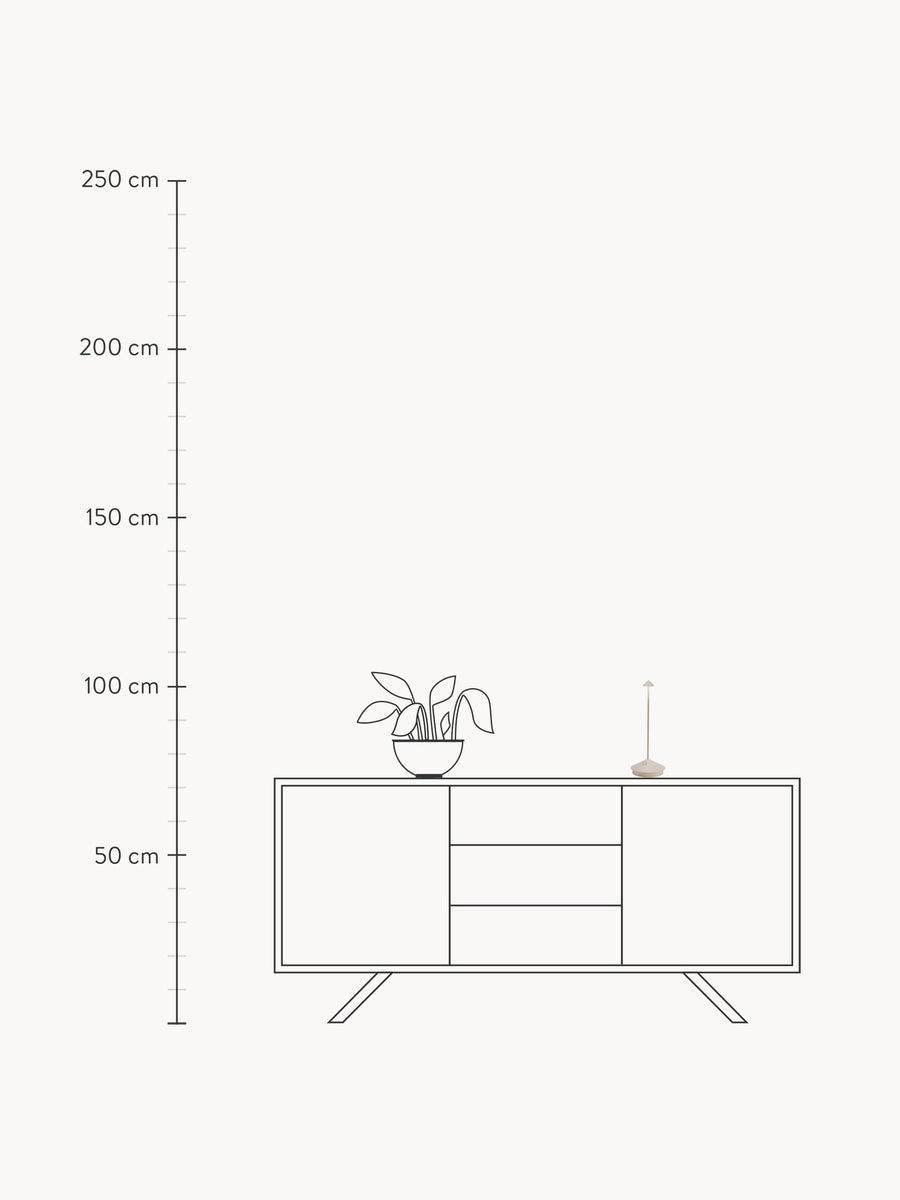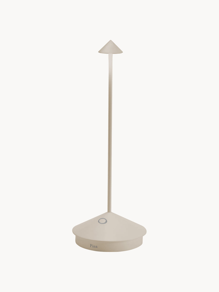 Bezprzewodowa, akumulatorowa lampa stołowa. Dotykowy panel na podstawie umożliwia włączanie światła, regulację jasności i wybór temperatury barwowej. Dzięki wysokiej klasie ochrony lampę można również stosować na zewnątrz. Elektroniczny system kontrolny monitoruje i wskazuje pozostałą moc akumulatora, aby zapewnić optymalne ładowanie i zawsze prawidłowe jego wykonywanie. Lampa jest dostarczana z podstawą ładującą. Ładowarka USB nie jest dołączona.
