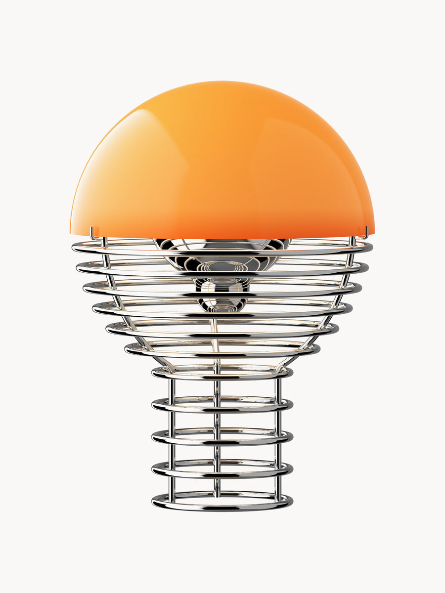 Kolekcja WIRE to hołd dla rzeźbiarskiej lekkości i ponadczasowego designu. Stworzona przez Vernera Pantona w Danii stalowa rama z wdziękiem rozszerza się, aby podtrzymać klosz, a półkulasty odbłyśnik kieruje światło LED w kierunku delikatnej, przyjemnej poświaty. Dzięki akumulatorowi i wszechstronności WIRE z łatwością przechodzi pomiędzy przestrzeniami wewnętrznymi i zewnętrznymi, oferując kultową, ale dyskretną obecność w każdym otoczeniu.