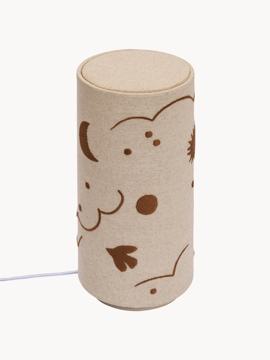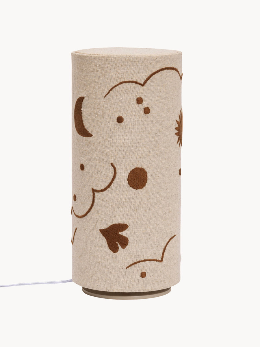 Lampa stołowa SKYE to zabawny dodatek do pokoju lub strefy zabaw każdego dziecka, z miękkim haftowanym wzorem w chmurki, który dodaje ciepła i charakteru. Lniana lampa emituje delikatne, rozproszone światło, a przełącznik przyciemniający i podstawa ze stali malowanej proszkowo zapewniają trwałość.