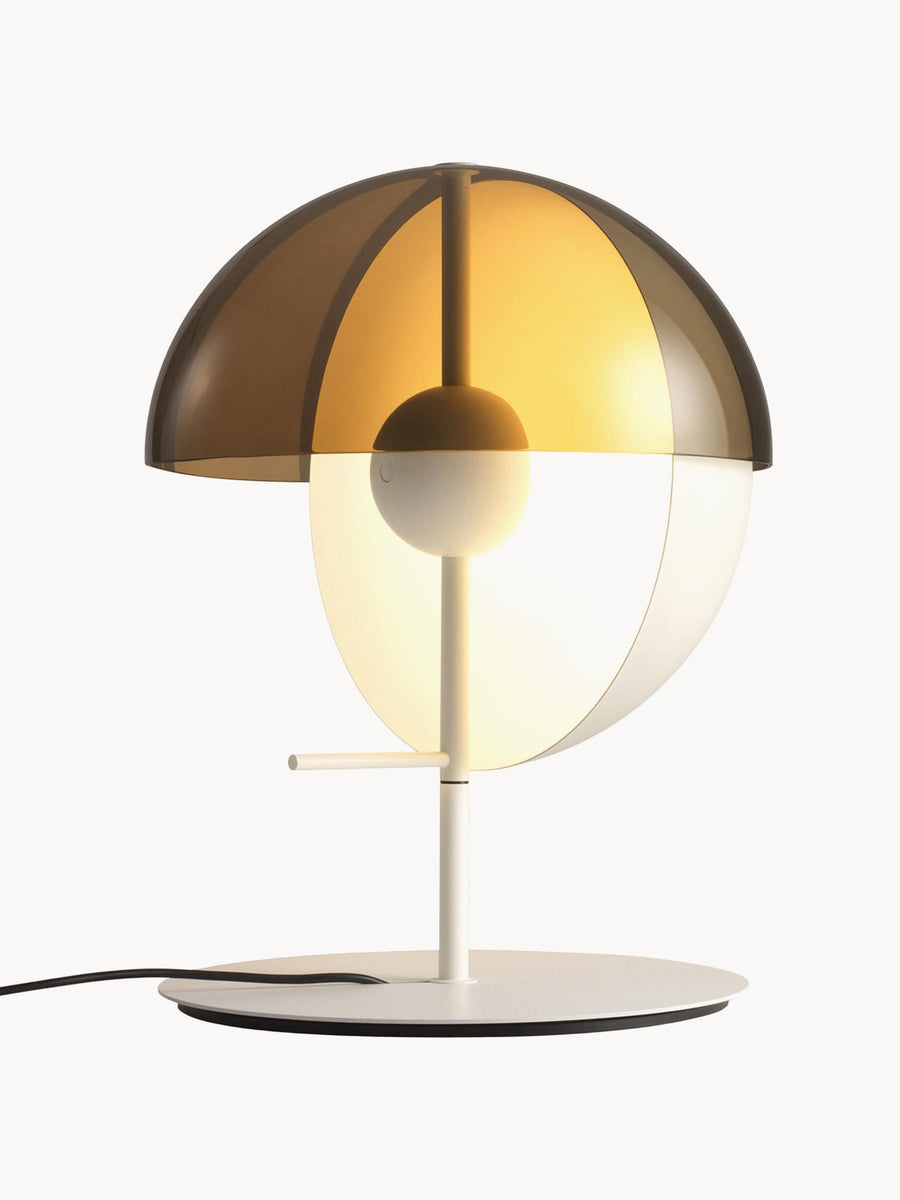 Projekt Thei jest elementarny i elegancki: dwie półkule, jedna umieszczona poziomo, a druga pionowo, przecinają się. Podobnie jak w naturze, te elementy umożliwiają jednoczesne rzutowanie, odbijanie i pochłanianie światła ze źródła przez przedmioty, zapewniając w ten sposób przyjemność wizualną.