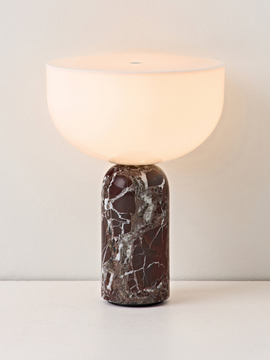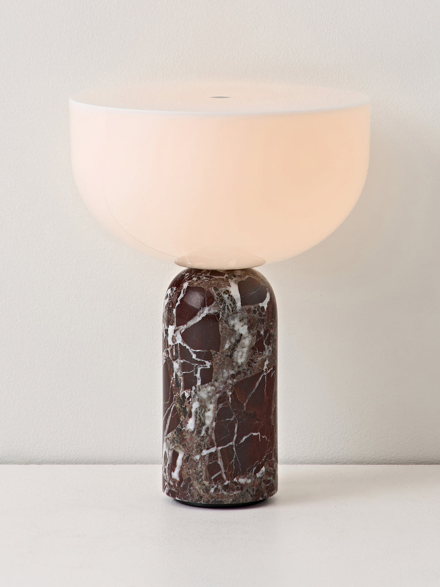 Lampa stołowa KIZU zachwyca rzeźbiarską kompozycją i wypełnionym napięciem balansem charakterystycznych kształtów – wersja przenośna nie jest wyjątkiem. Materiały i wyraz pozostają takie same, a konstrukcja jest kompaktowa i zapewnia maksymalną elastyczność, dzięki czemu można ją ustawić w dowolnym miejscu, w którym potrzebne jest światło.