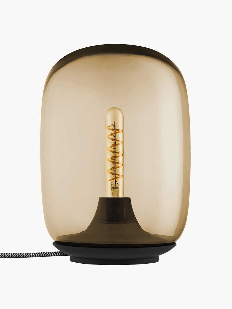 Nawet gdy nie świeci, lampa ACORN jest wspaniałym dodatkiem. Dzięki wyjątkowemu kształtowi, estetycznemu tekstylnemu kablowi i praktycznemu rozmiarowi, idealnie pasuje na półkę z książkami, parapet lub stolik nocny. Eliptyczny, szklany klosz i żarówka LED z żarnikiem w kształcie spirali emitują miękkie, stonowane światło przypominające blask świecy.