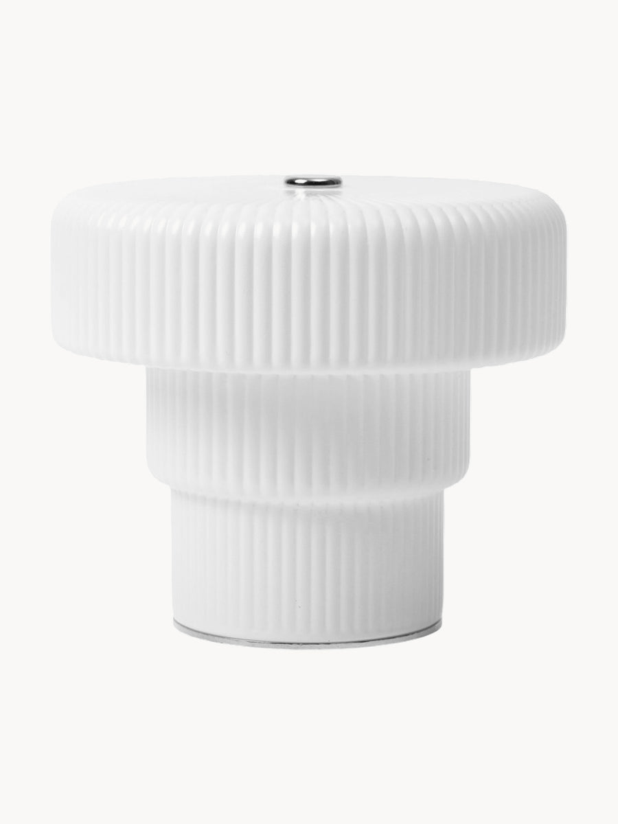 Dodaj delikatny blask do swojej przestrzeni dzięki lampie RIPPLE. Wykonana z ręcznie dmuchanego szkła z ryflowaną powierzchnią i białym opalowym wykończeniem, emituje ciepłe, rozproszone światło. Kompaktowa konstrukcja idealnie nadaje się na romantyczne wieczory lub jako dodatek do nakrycia stołu.