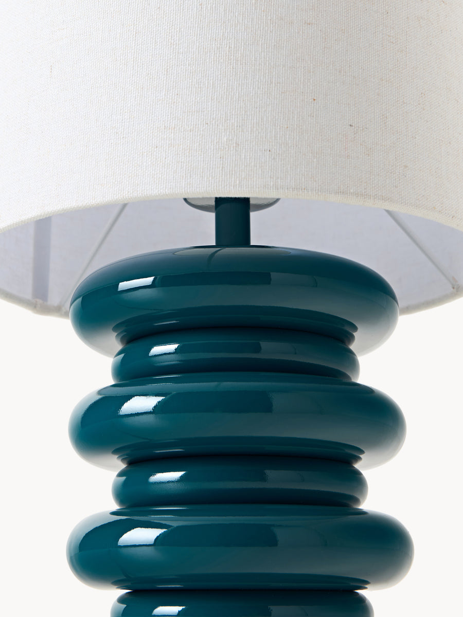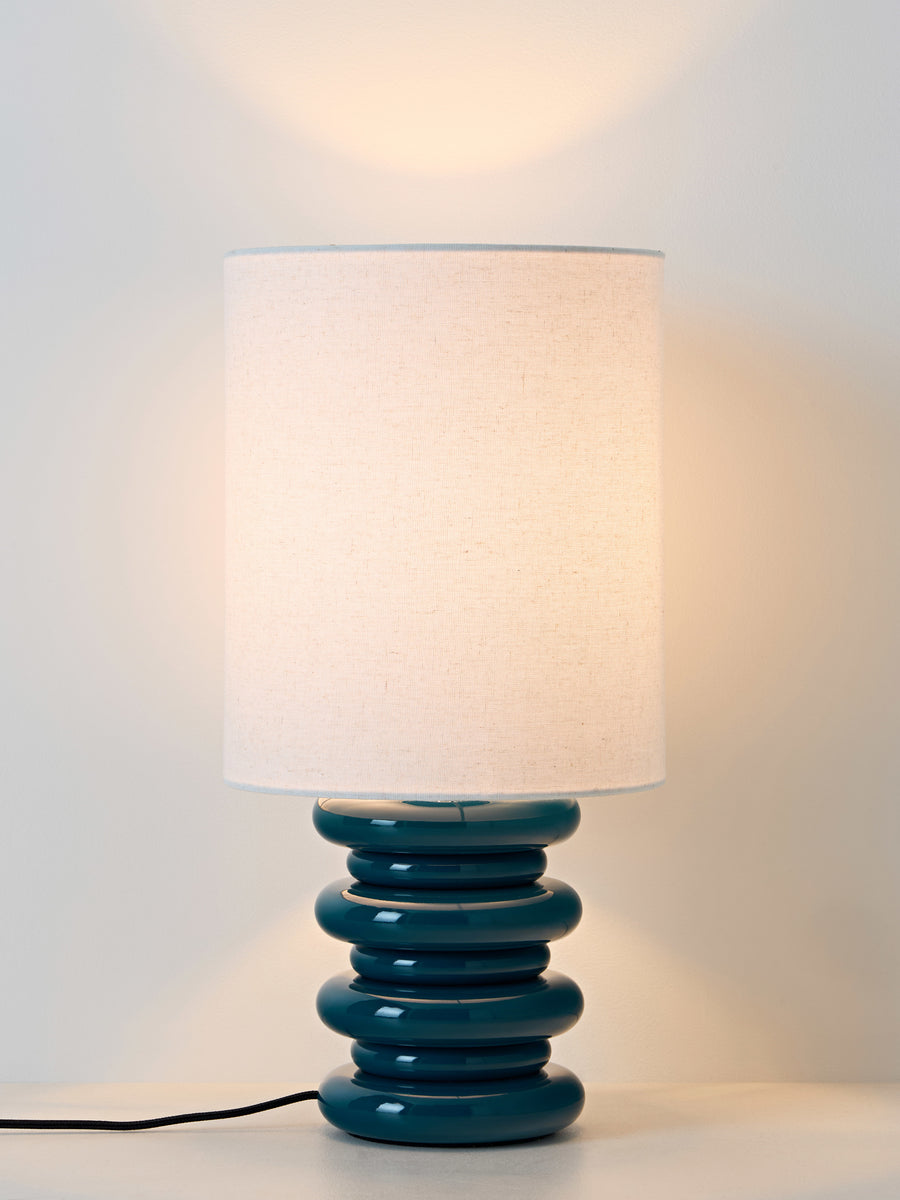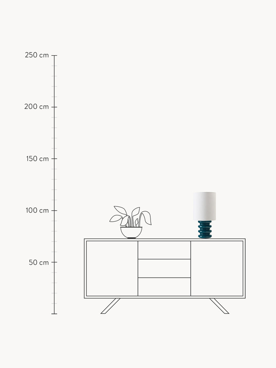 Wprowadź do wnętrza odrobinę czaru dzięki lampie stołowej NICOLAS, w której zabawny design spotyka się z rzeźbiarską elegancją. Podstawa, wykonana z lakierowanych drewnianych pierścieni, tworzy rytmiczną i przyjemną w dotyku sylwetkę, a starannie dobrana kolorystyka stanowi żywy akcent dekoracyjny. Zwieńczona gładkim, białym cylindrycznym abażurem, lampa emituje miękkie, nastrojowe światło, nadając charakter każdemu wnętrzu.