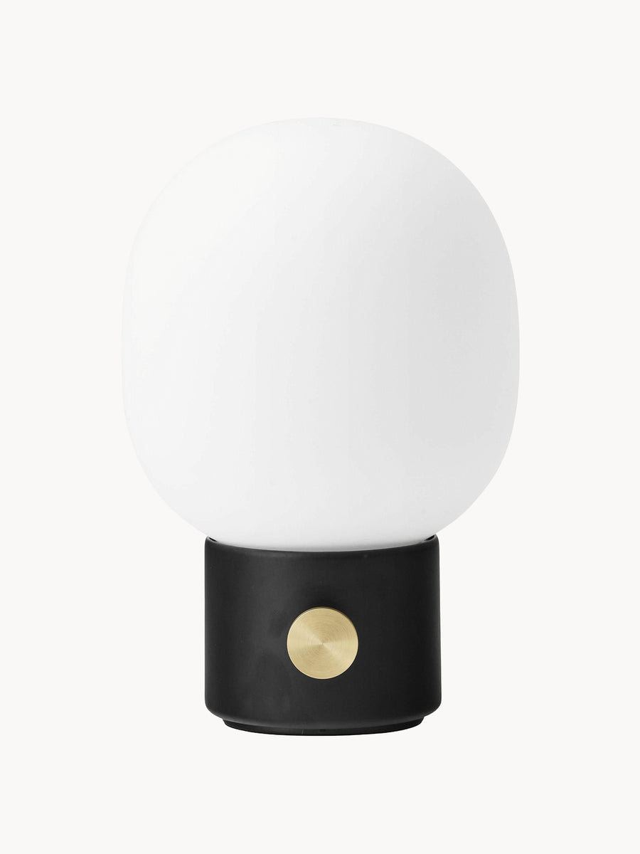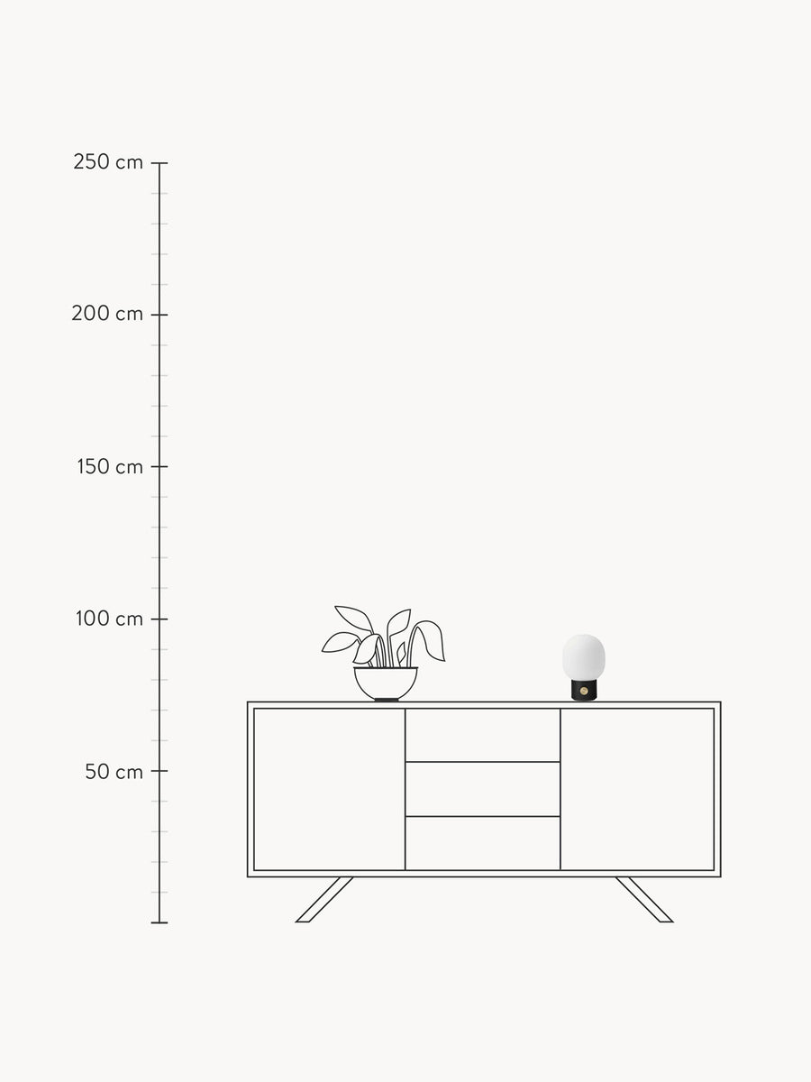 Inspirowana tradycyjnymi lampami olejnymi i wykonana z kontrastujących materiałów, bezprzewodowa lampa JWDA oferuje pełną swobodę przenoszenia w dowolne miejsce. Kompaktowa forma z eliptycznym kloszem i solidną metalową podstawą z mosiężnym ściemniaczem gwarantuje do dziesięciu godzin regulowanego światła po pełnym naładowaniu. Całość ładowana jest za pomocą dyskretnego złącza magnetycznego i kabla USB.