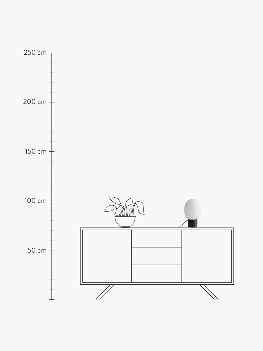 Lampa JWDA to współczesna ikona. Jej rzeźbiarska kompozycja przyciąga wzrok i ożywia każde pomieszczenie. Kontrast między delikatnym, zaokrąglonym szkłem a solidną metalową podstawą tworzy zrównoważoną i fascynującą sylwetkę.