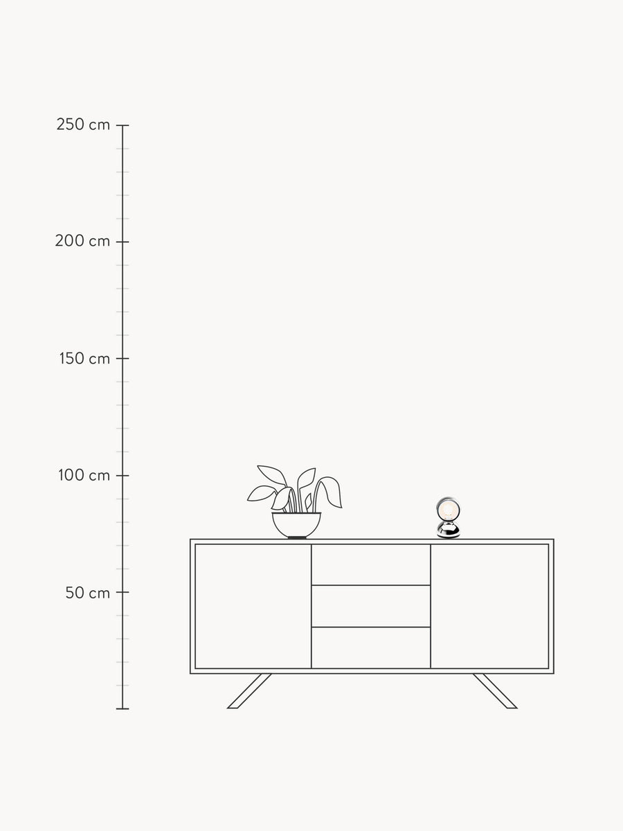Lampa ECLISSE to nowoczesny klasyk, który reprezentuje awangardową równowagę formy i funkcjonalności. Jej mechanizm, który pozwala na obracanie wewnętrznej kuli w zewnętrzną, inspirowany jest zjawiskiem zaćmienia słońca i jest prekursorem dzisiejszych przyciemniania.