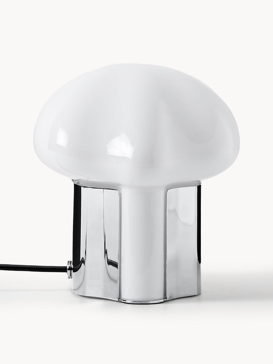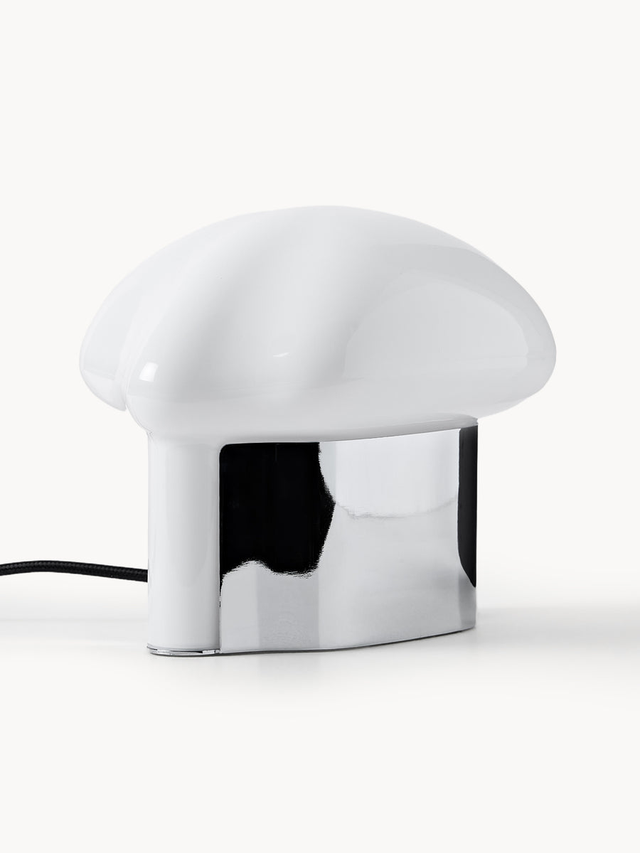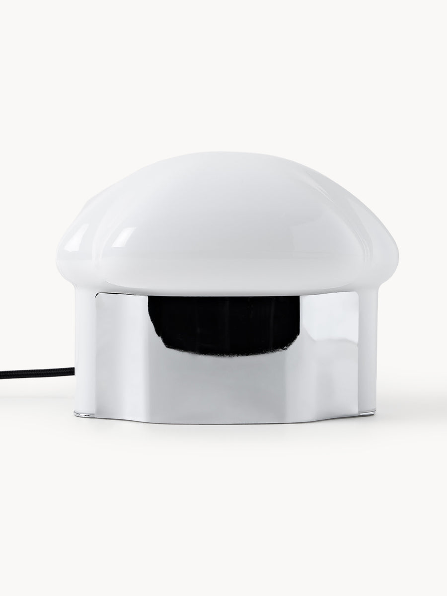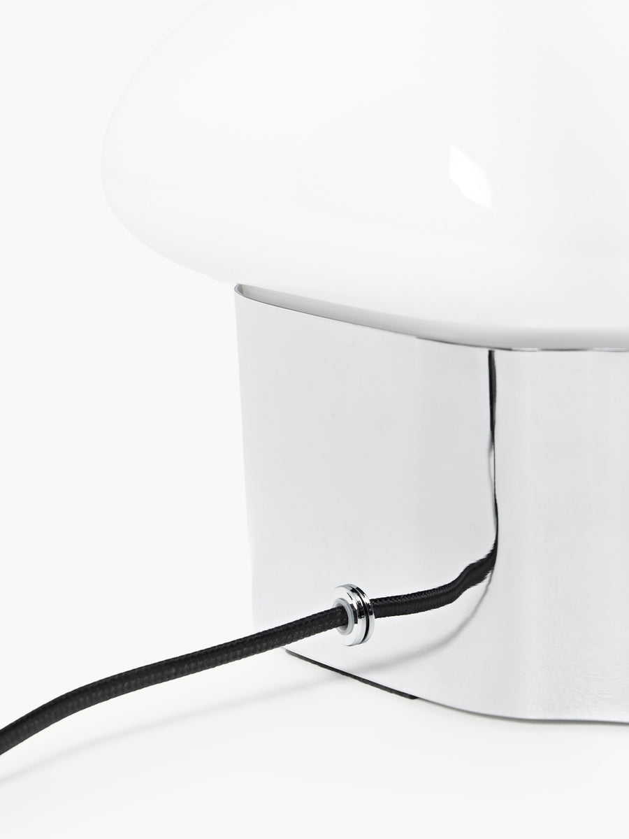 ILUNA to lampa stołowa, która doskonale łączy elegancję i wyjątkowość. Ręcznie dmuchany klosz z mlecznego szkła sprawia, że każdy egzemplarz jest niepowtarzalny. Umieszczona na smukłym chromowanym stelażu, emituje miękkie, nastrojowe światło i stanowi stylowy akcent w każdym pomieszczeniu.