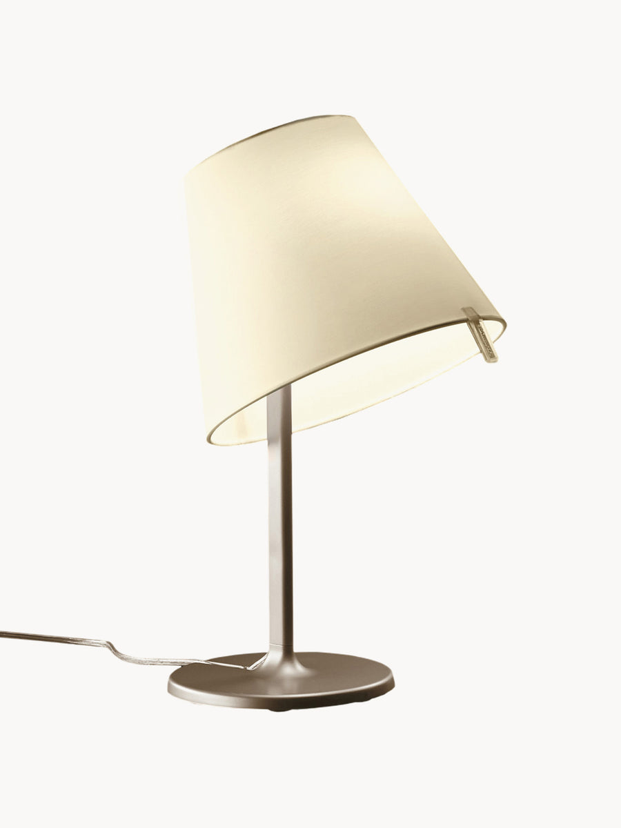 Prosta i elegancka lampa o tradycyjnym charakterze, której funkcjonalność zwiększa ruchomy klosz, który można przechylać i obracać w celu skierowania światła, a także włącznik na ramieniu.