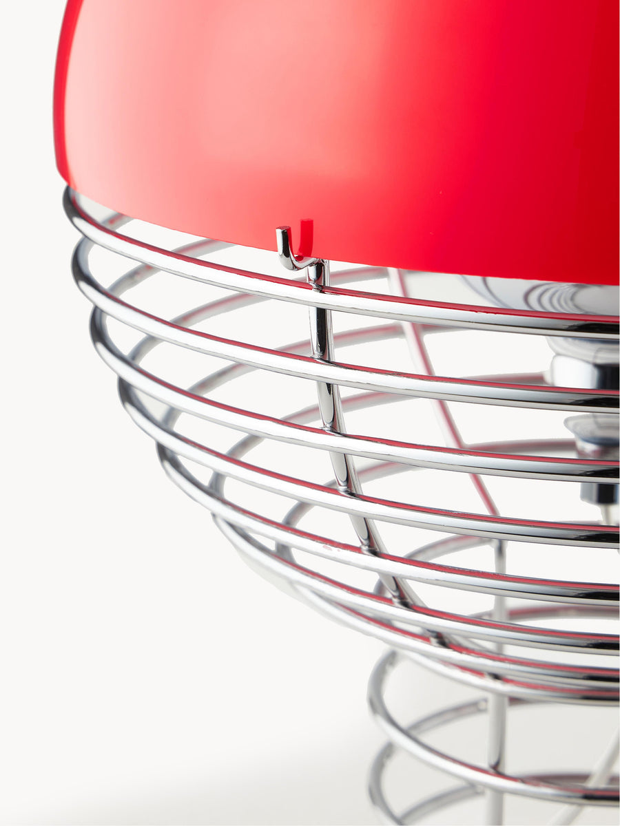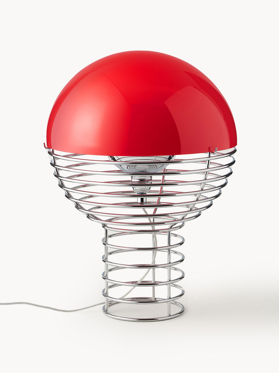 Dekoracyjna lampa Wire charakteryzuje się ramą ze stalowego drutu, która rozszerza się ku górze, aby utrzymać klosz. Żarówka umieszczona jest pod niewielką, półkulistą kopułą, która kieruje światło do wnętrza klosza. Rama nadaje projektowi charakterystyczny, ale bardzo lekki i dyskretny wygląd.