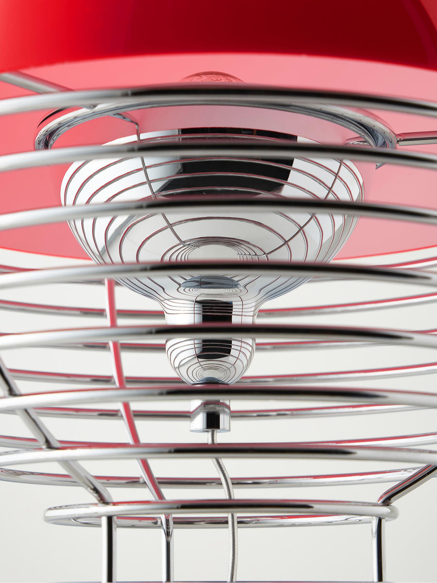 Dekoracyjna lampa Wire charakteryzuje się stalowym stelażem, który u góry rozszerza się, aby podtrzymać klosz. Żarówka znajduje się w małym, również półkulistym odbłyśniku, który kieruje światło do wnętrza klosza. Stalowy stelaż nadaje konstrukcji charakterystyczny, ale bardzo lekki i dyskretny wygląd.