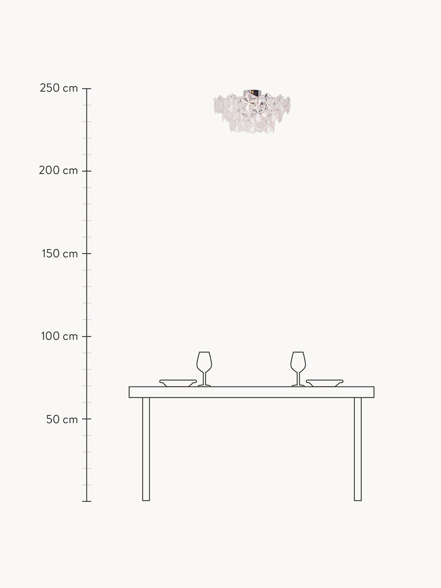 Lampa sufitowa MONARQUE tworzy oszałamiający efekt dzięki kaskadowej konstrukcji, która pięknie łapie i odbija światło. Każdy element współpracuje ze sobą, rzucając hipnotyzujące wzory na podłogę i ściany, zapewniając jednocześnie doskonałe oświetlenie. Przekształć dowolną przestrzeń w coś naprawdę spektakularnego dzięki tej efektownej lampie.