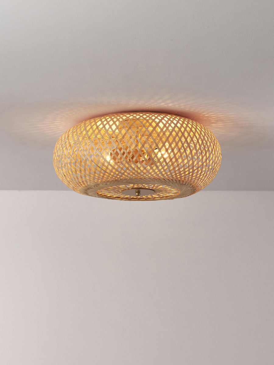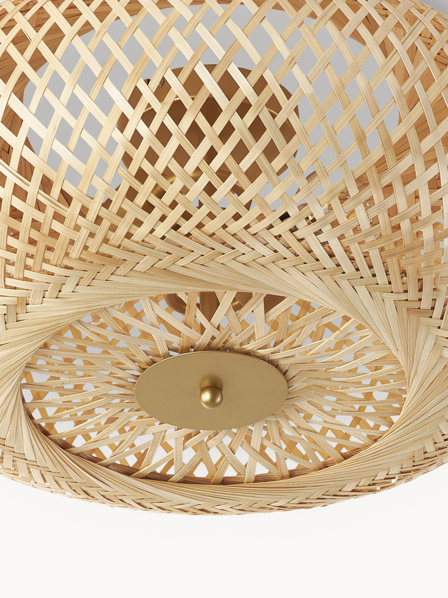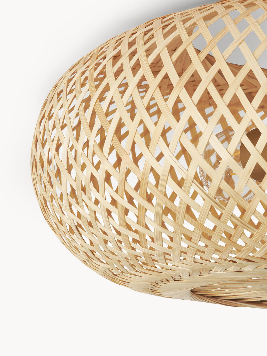 EVELYN to prawdziwe naturalne piękno. Ręcznie wykonana lampa sufitowa z naturalnej bambusowej plecionki nie tylko zapewnia przyjemne oświetlenie, ale także rzuca piękny wzór na ścianę zaraz po włączeniu.