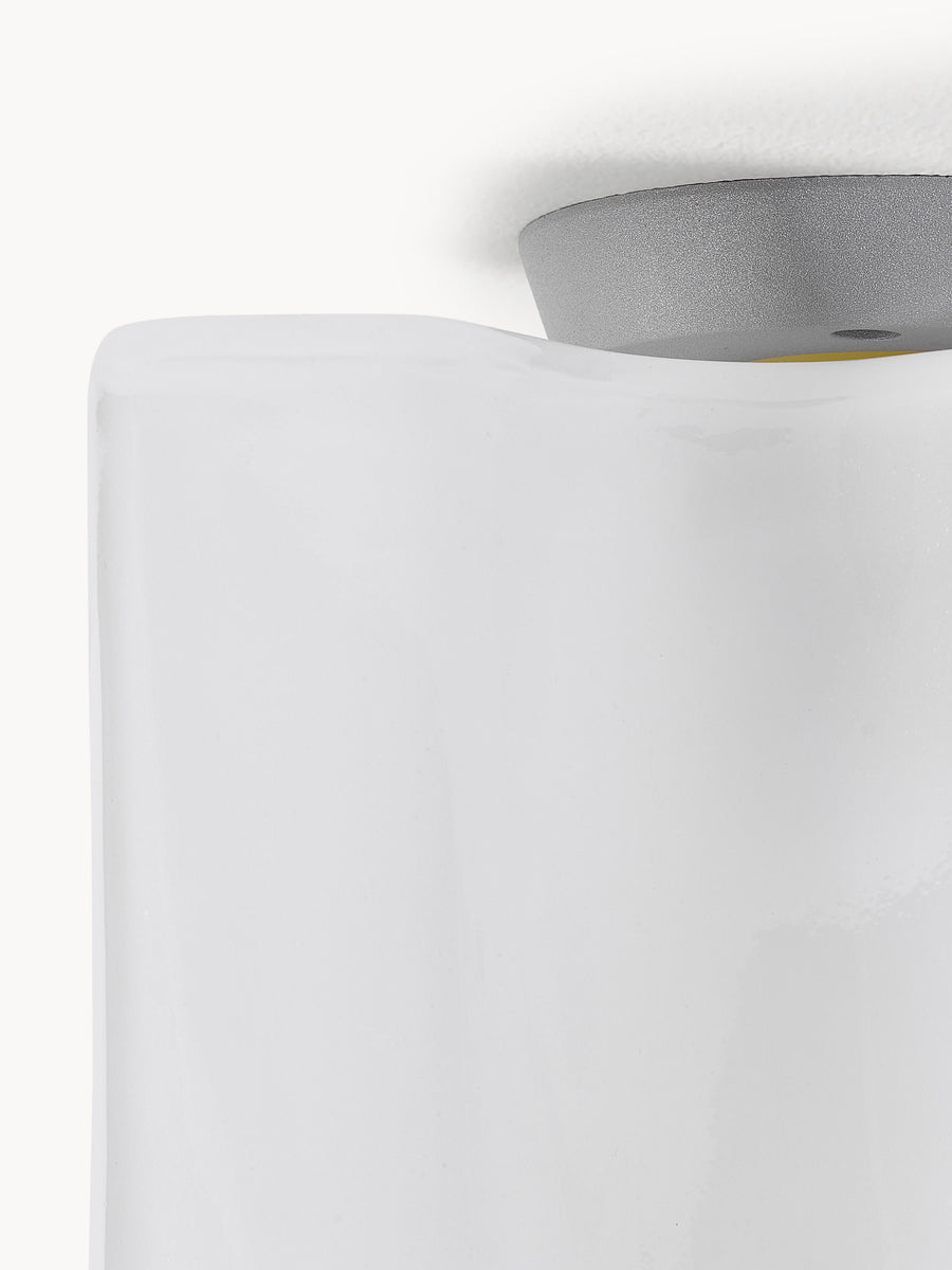 Elegancki klosz wykonany z dmuchanego szkła o jedwabiście błyszczącym wykończeniu nadaje lampie dekoracyjny wygląd, zarówno gdy jest włączona, jak i wyłączona. Modułowy, organiczny kształt pozwala na połączenie kilku lamp.