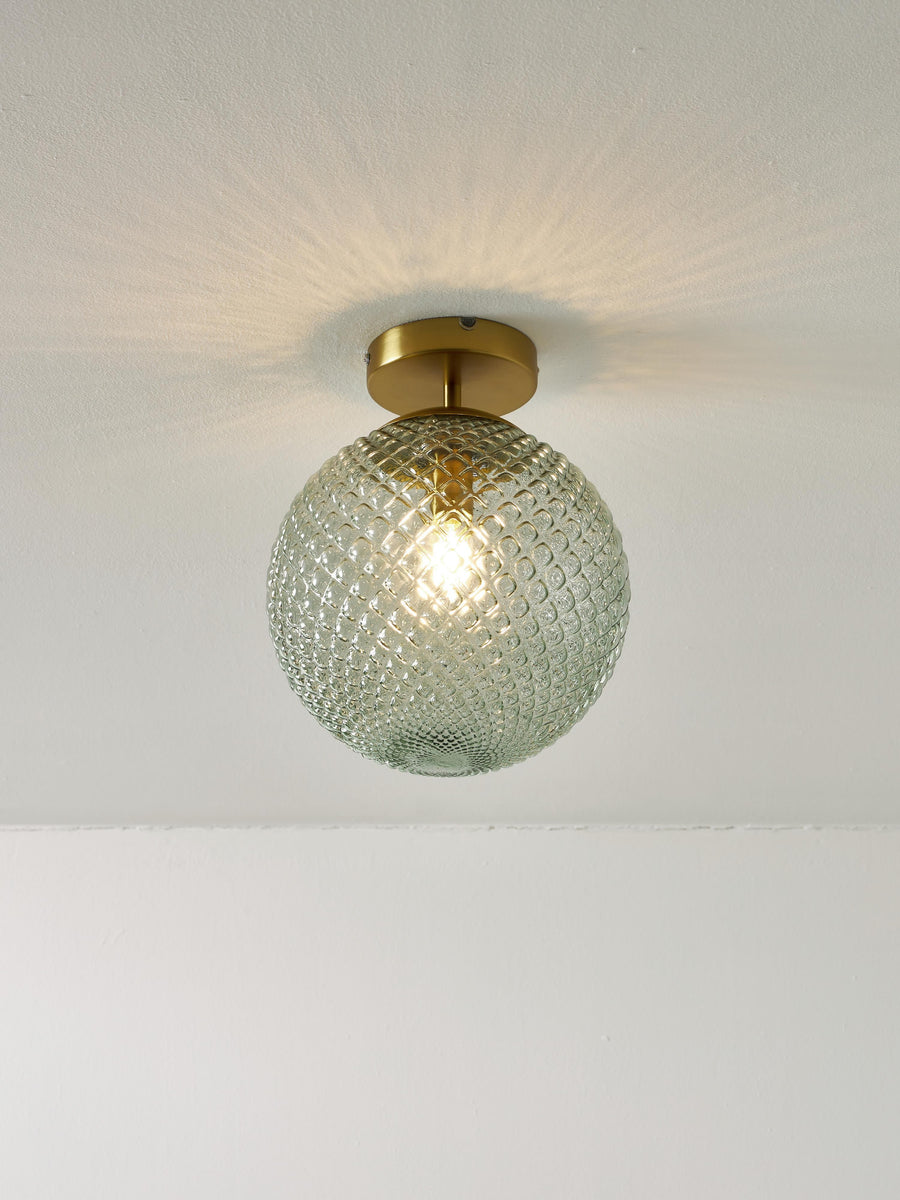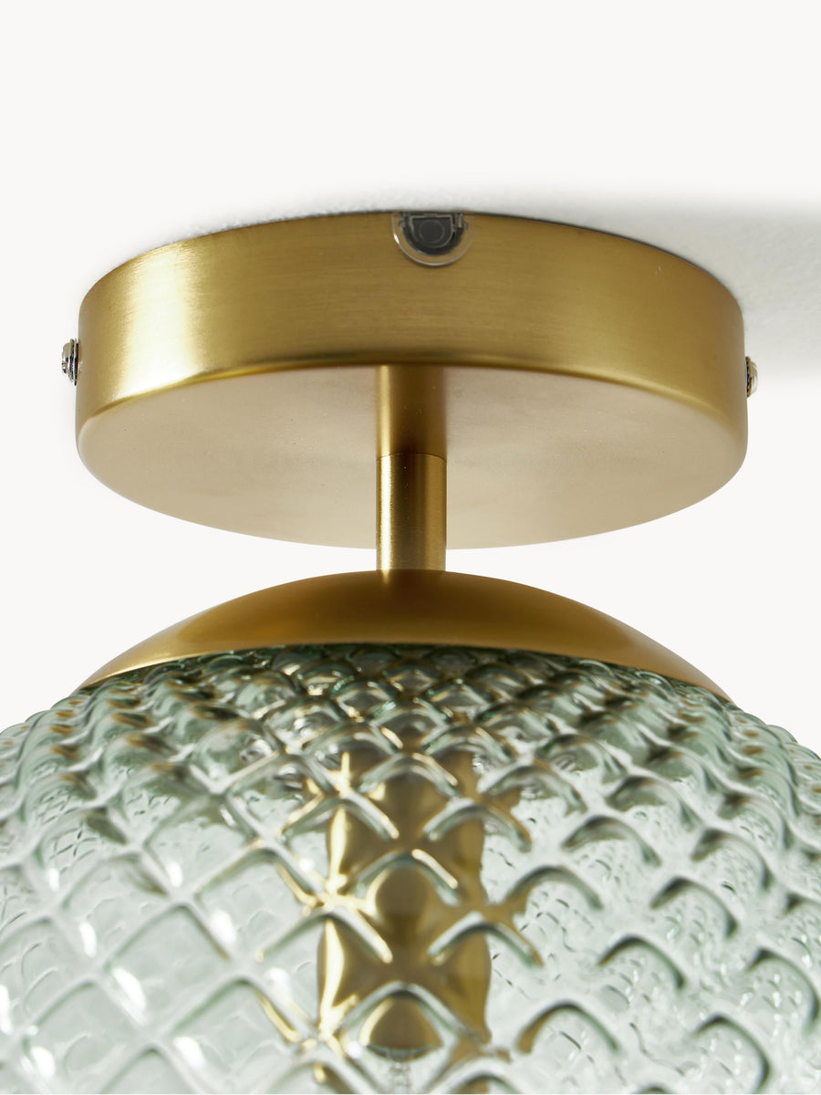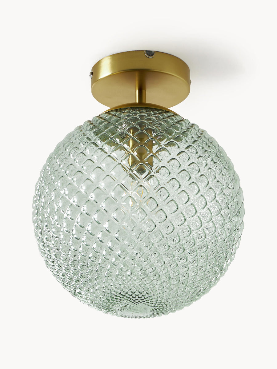 Lampa sufitowa z kloszem z kolorowego szkła z reliefem.