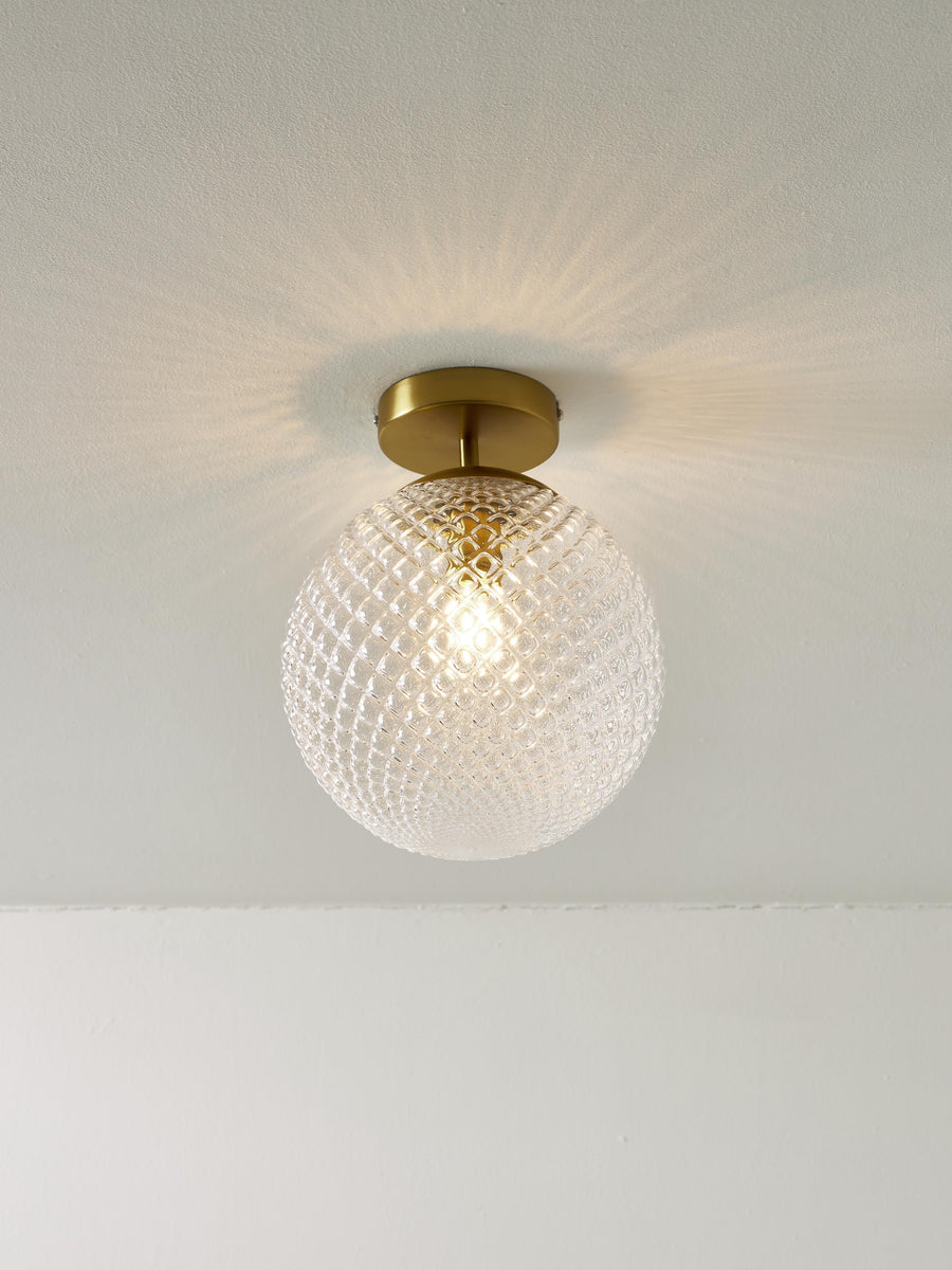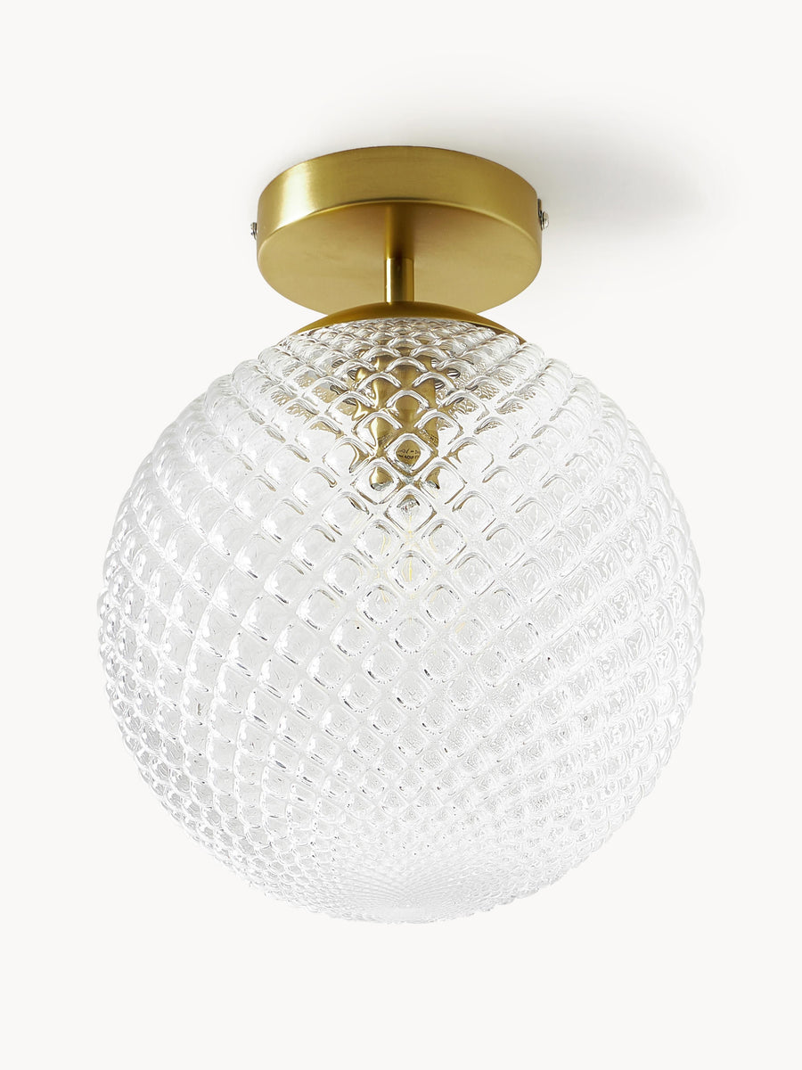 Lampa sufitowa z kloszem z kolorowego szkła z reliefem.