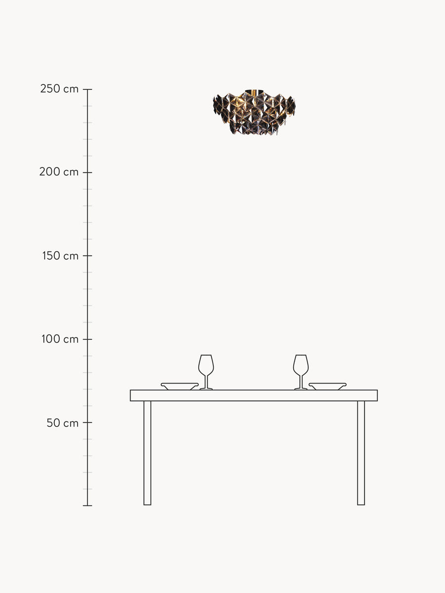Lampa sufitowa MONARQUE tworzy oszałamiający efekt dzięki kaskadowej konstrukcji, która pięknie łapie i odbija światło. Każdy element współpracuje ze sobą, rzucając hipnotyzujące wzory na podłogę i ściany, zapewniając jednocześnie doskonałe oświetlenie. Przekształć dowolną przestrzeń w coś naprawdę spektakularnego dzięki tej efektownej lampie.