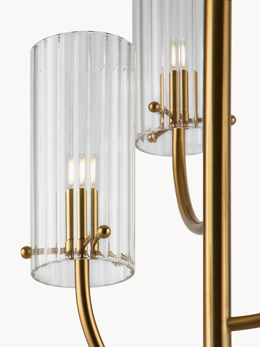 Dodaj odrobinę luksusu do swojego domu dzięki tej oszałamiającej lampie ARCO. Pełne wdzięku łuki i połyskujące powierzchnie emanują czystą elegancją. Stylowe szklane klosze pięknie rozpraszają światło i tworzą przyjazną atmosferę, idealną do jadalni lub strefy wejściowej.