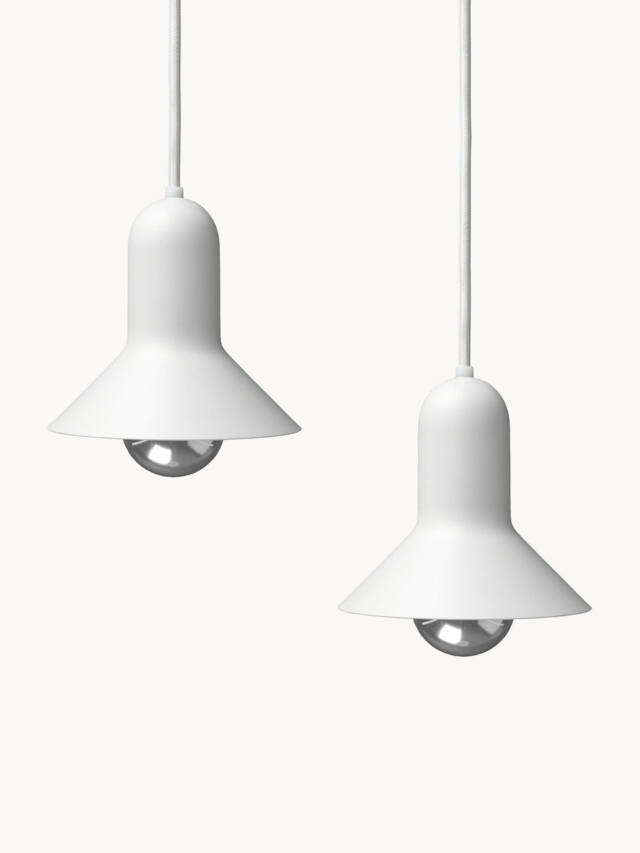 Lampy wiszące BT1091 CONFETTI zostały zaprojektowane przez Clausa Bonderupa i Torstena Thorupa. Eklektyczni duńscy architekci stworzyli tę podwójną lampę wiszącą jako część serii geometrycznych lamp sufitowych, którą ukończyli w 1970 roku. Lampy BT1091 CONFETTI mają smukłe, stożkowe klosze, które łączą funkcjonalne kształty dwóch większych lamp sufitowych z tej serii. W lampach zastosowano żarówki półlustrzane, wybrane przez Bonderupa i Thorupa, ponieważ tworzą ciekawe refleksy świetlne.