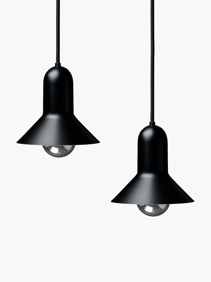 Lampa wisząca BT1091 CONFETTI została zaprojektowana przez Clausa Bonderupa i Torstena Thorupa. Ci wszechstronni duńscy architekci zaprojektowali tę podwójną lampę wiszącą jako część swojej serii geometrycznych lamp sufitowych, którą ukończyli w 1970 roku. Lampy wiszące BT1091 CONFETTI mają smukłe, stożkowe klosze, które stanowią pomost między funkcjonalistycznymi kształtami dwóch większych lamp sufitowych z serii. Żarówki półlustrzane, które wybrali Bonderup i Thorup, ponieważ tworzą interesujące refleksy światła.
