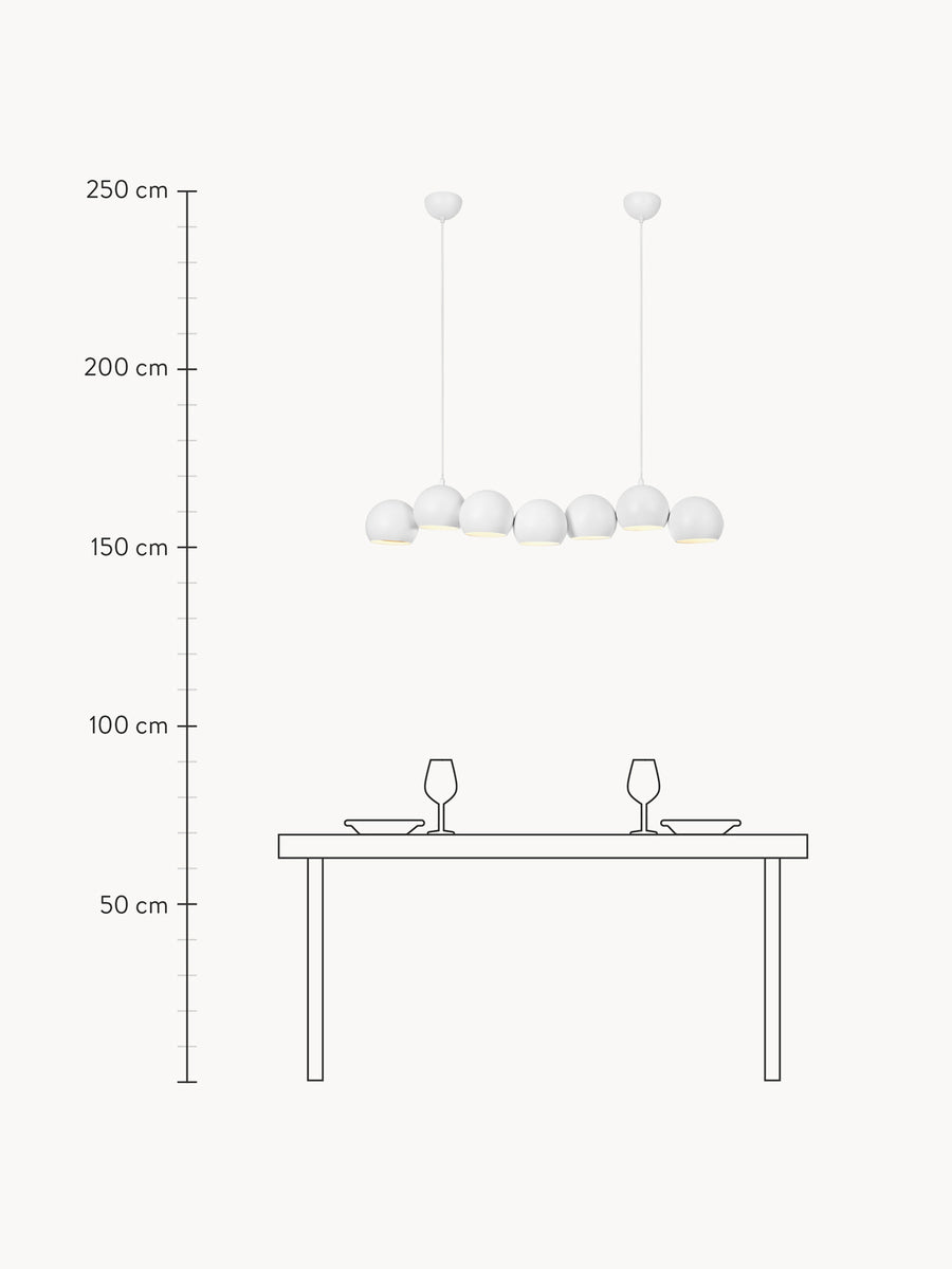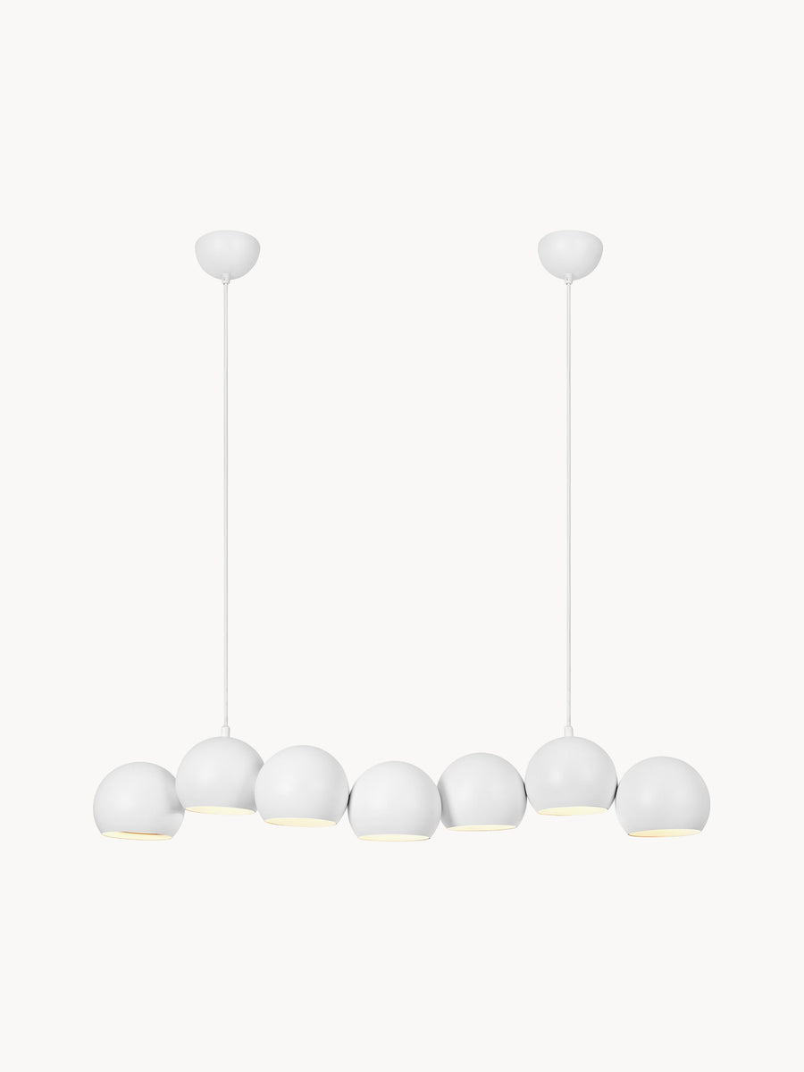 Lampa wisząca Cupolo tworzy oszałamiający punkt centralny dzięki rzędom eleganckich kloszy zawieszonych nad stołem w jadalni. Ta nowoczesna konstrukcja wnosi wyrafinowaną atmosferę do każdego pomieszczenia, zapewniając jednocześnie pięknie rozproszone światło. Idealnie nadaje się do tworzenia intymnej atmosfery podczas kolacji lub rozjaśniania wyspy kuchennej.