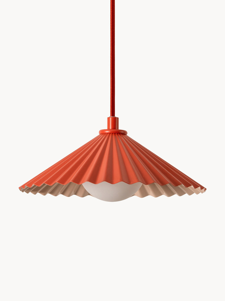 Kompaktowa, ale efektowna lampa wisząca powstała we współpracy projektantów houseof z Emmą Gurner. Mała forma tej lampy emituje ciepłe światło, idealnie sprawdzając się nad blatami kuchennymi czy wyspami, zwłaszcza w zestawieniu kilku egzemplarzy. Można ją także połączyć z większą lampą wiszącą i kinkietem, tworząc spójny schemat oświetlenia.